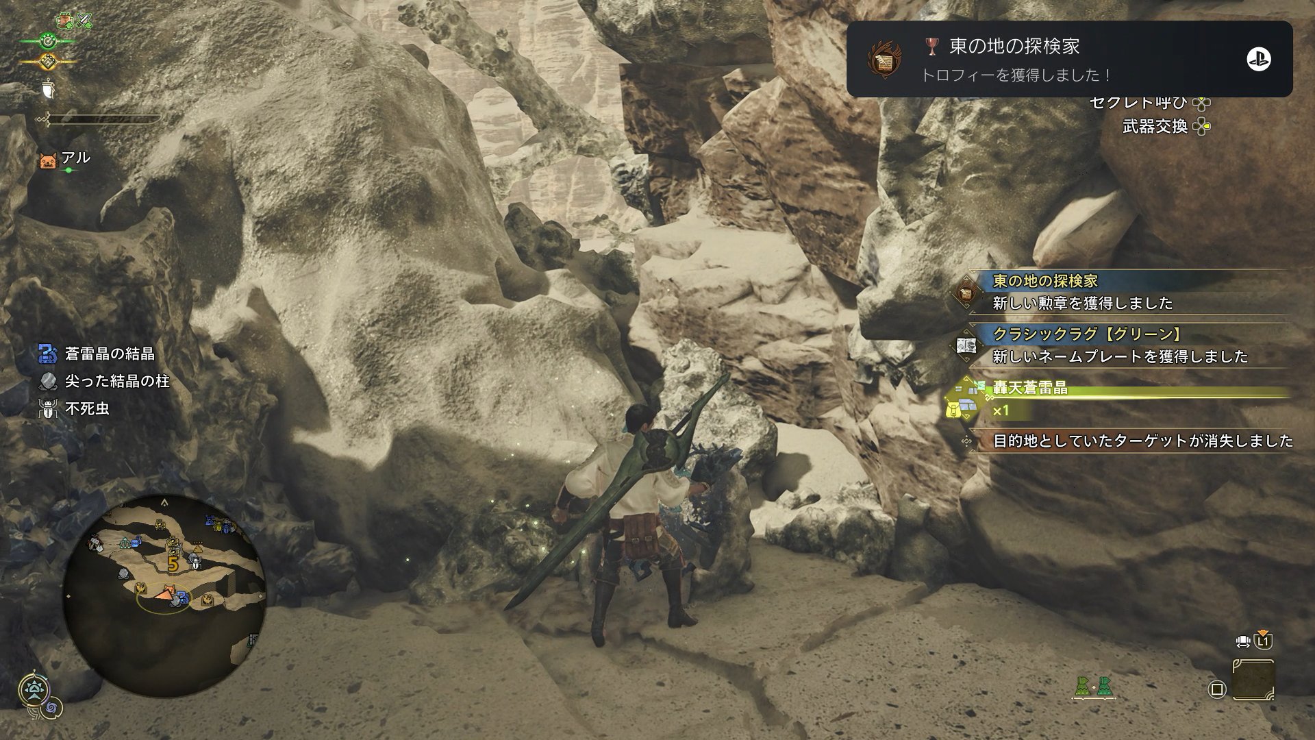 ――というわけで。未入手だったレア物×2つは、どちらも「隔ての砂原」の特産品であるので、大集会所で祭りが行われている中、ひたすら砂漠から出現をしていった。そう言えば、周りにも人がいくらか居たが、彼らもトロフィー狙いだったのかもしれない…。