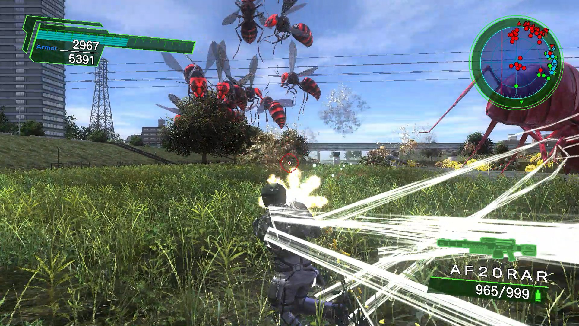 ところで。地球防衛軍シリーズは、現在はPSハードを中心に展開されているが、一時期はXboxで優先販売されていたことがあり、『3』がそうだった。“PSハードで人気絶頂だったタイトルが、何故かいきなり他社製ハードに移行して、プレイステーションで発売されなくなる”という、例のアレである。その流れもあって、新作の『4』は、PS3/Xbox360というマルチプラットフォームでの発売となったのだが、PS3での開発が初めてだったためか、PS3版『4』は非常にパフォーマンスに問題のある作品であり、動作はガクガクなうえに、ロード時間も分単位と極めて長かった。もともとPSハードで人気の作品だったのに…。