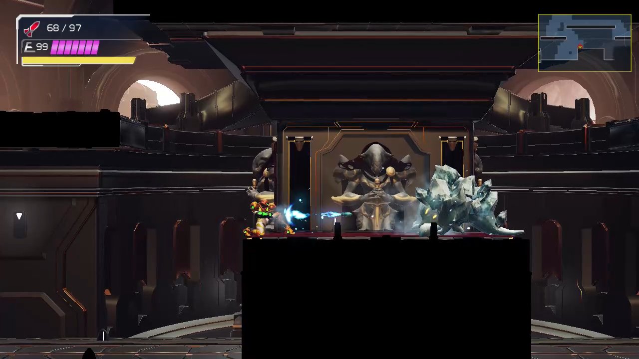 …さて、X鳥人兵士とは、1画面に収まる四角い部屋で戦うことになる。また、攻撃パターンが読みやすく、わざわざ突進せず、中央に移動してから、波動的なアレで攻撃をしてくるという方法も取る。敵が小さめなこともあって、何かと、ロックマンXのボスっぽい印象を受ける相手だ。しかしながら、フラッシュシフト連打と、向こうで言うエアダッシュ3回にも等しい超機動力をサムスは持っているため、あちらよりも遥かに楽に戦っていける。