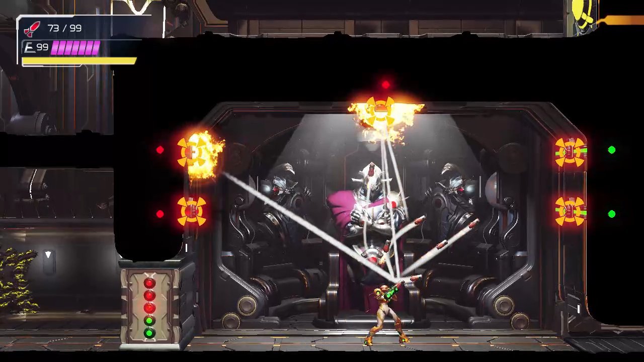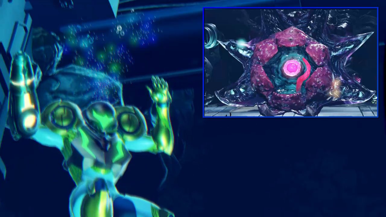 ――さて、ここは、“廃棄された無人研究所”という感じであるが、SF作品の恒例行事として、機械のシステムは生きている。現実では毎日メンテナンスしてても壊れるのにな!!! それはそうと、ここでは「X」が再登場した。『フュージョン』で初登場した寄生生物であるが、“寄生=寄って生きる”とは名ばかりで、相手を殺害したあげく、そのコピーを無限に生成するという、悪逆非道な生物だ。その際は、遺伝的な特徴のみならず、知恵や能力まで真似ることができ、『フュージョン』では、最強状態のサムスをコピーした「SA-X」という敵が、大きなライバルキャラクターとして登場した。ちなみに、生物兵器としての「メトロイド」は、このXを駆除するために作られた…という設定も、作品展開のいずれかの段階で行われたらしい。