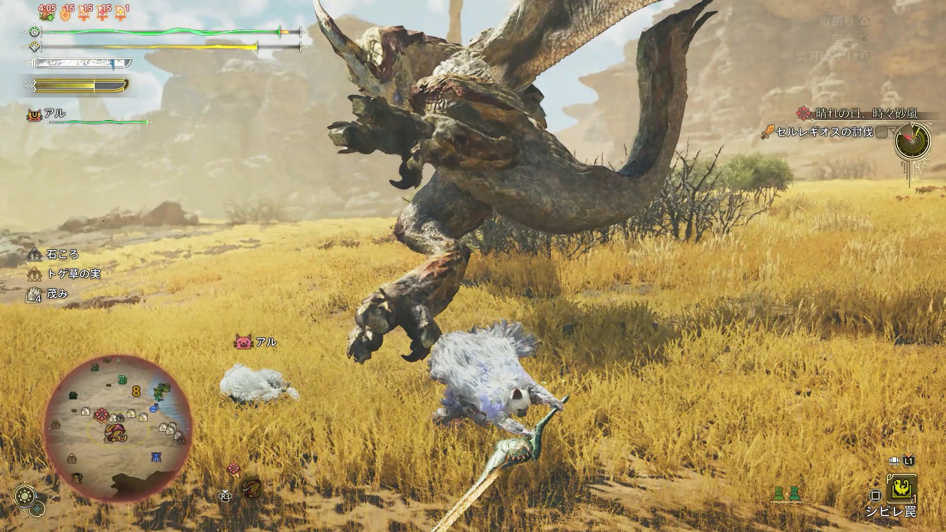 …さて、こいつでまず驚いたのは、作中世界の人物たちが、「セル・レギオス」と発音していたことである。私はずっと「セルレ・ギオス」だと思っていた。「ラギアクルス」と同じイントネーションである(こちらはもちろん「ラギア・クルス」)。言われてみれば、『サンブレイク』では、全くストーリーに絡まなかった(緊急クエストですらない)ため、音声で名前を聞く機会がなく、やむをえないことである。しかしまあ、「プロデュ↑ーサー↓さん」的な感じで、これからも最初の自分の感覚を大切にしていきたいと思う。