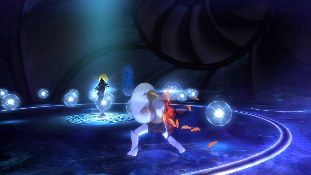 ――また、もう1曲は、「予感」(【YouTube】)という名称であり、終盤のボスである「アルマロス」という敵との戦闘BGMとなっている。この敵については、“観客の居るライブ会場”といった謎の世界観で戦うことになり、前哨戦においては、敵のダンスが画面を覆い尽くすなど、冷ややかな雰囲気の演出が為される。ただ、実際のボス戦に入るとガチであり、“ロックとオーケストラの超融合”といったカッチョいいBGMの中で、1vs1の死闘が繰り広げられる。敵の芝居掛かった歩き方や、弾幕STGのような美しい水弾は、「あー、いたいた、こんな奴!w」と、懐かしく思い出せるものだ。