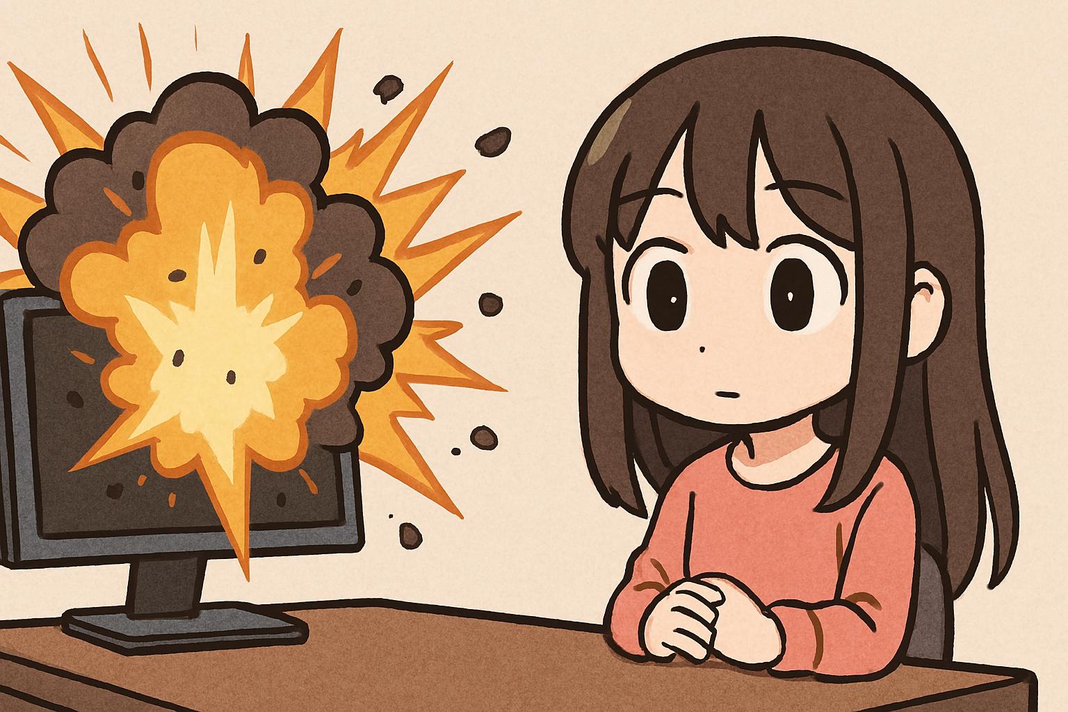 ――また、いざコード類を繋いで起動をしたが、ディスプレイの表示が不規則に点灯と消灯を繰り返す。なお、ディスプレイも新品(【日記:2025/9/3】に書いた、「メイン27インチ」のほう)であったが、PS5をHDMI接続して地球防衛軍6のDLC2をプレイしてみても、特に画面異常は出なかったので、完全にPC本体の問題である。非常に嫌な予感がした。さらに、その後セットアップを進めていくと、黒画面にぐるぐるロードのところで、ついに処理が進まなくなってしまった。相変わらず、画面も不規則に点灯と消灯を繰り返し、もう不安MAXである。まさかの、初期不良品なのか…?