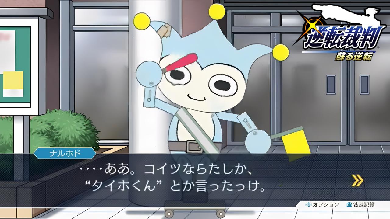 …また、マスコットキャラクターの「タイホくん」は、GBA版『1』の時点から、小ネタとしてじわじわ登場していたのだが、「蘇る逆転」で初めて立体化をした。一発ネタと思いきや、新システムである「動画証拠」の検証で、非常に良い味を出してくれている。その後、『検事』などでの更なる出番拡大に繋がる、重大な契機だったと言えるだろう。
