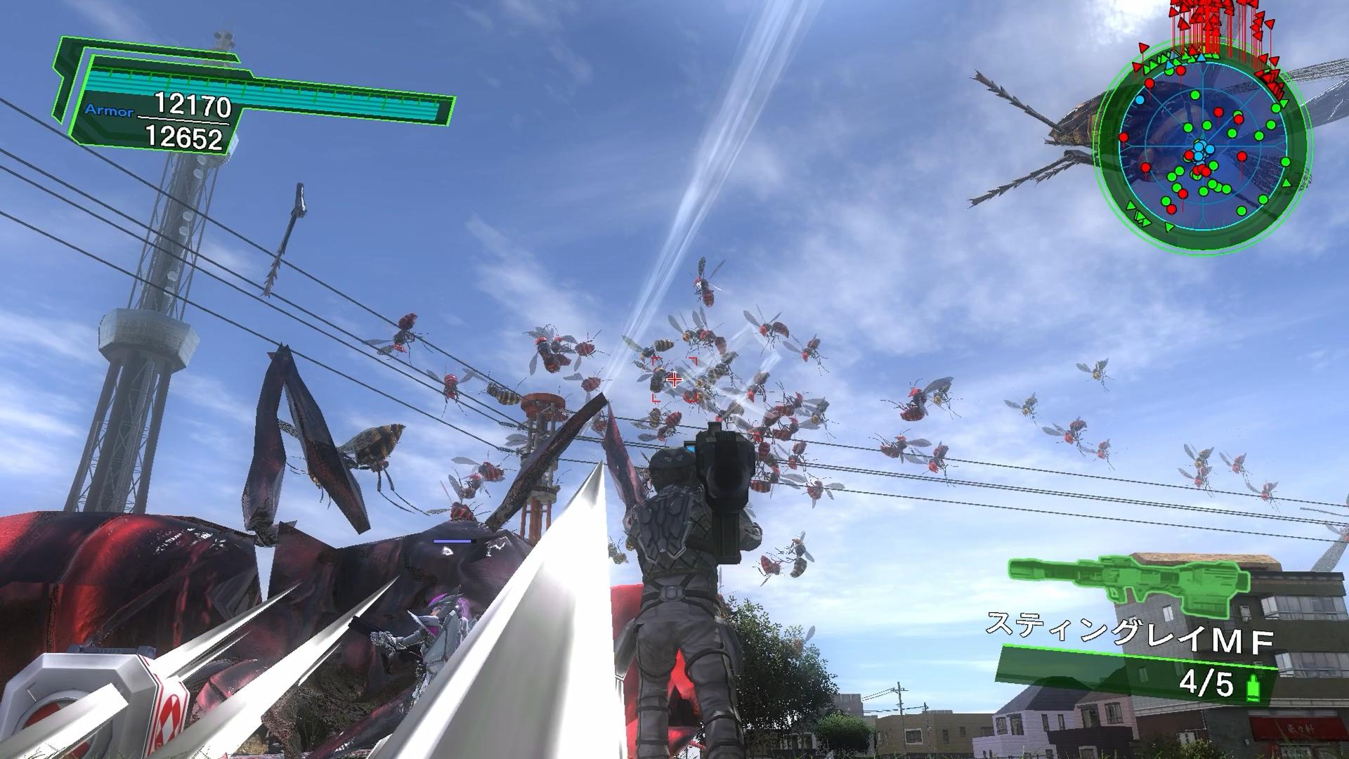 そんな環境で、武器として起用したのは、AF100と、スティングレイMFである。ミサイルならともかく、無誘導のロケットランチャーを対空戦に持っていくのは、あまり推奨されないのだが、ただ、あまりにも敵の数が多いため、「当たりやすさ」と「爆風に巻き込める数」の両面で、『4』の頃よりも、起用する意義の大きな武器となっている。まあ、ぶっちゃけ、当たるかどうか、そして当たったときの効果は運に依るところも大きいのだが、それはそれで、負けたときは、“自分が悪いのではなく運が悪かっただけ”と割り切るという、高難易度ゲーにありがちな開き直りが可能だ。