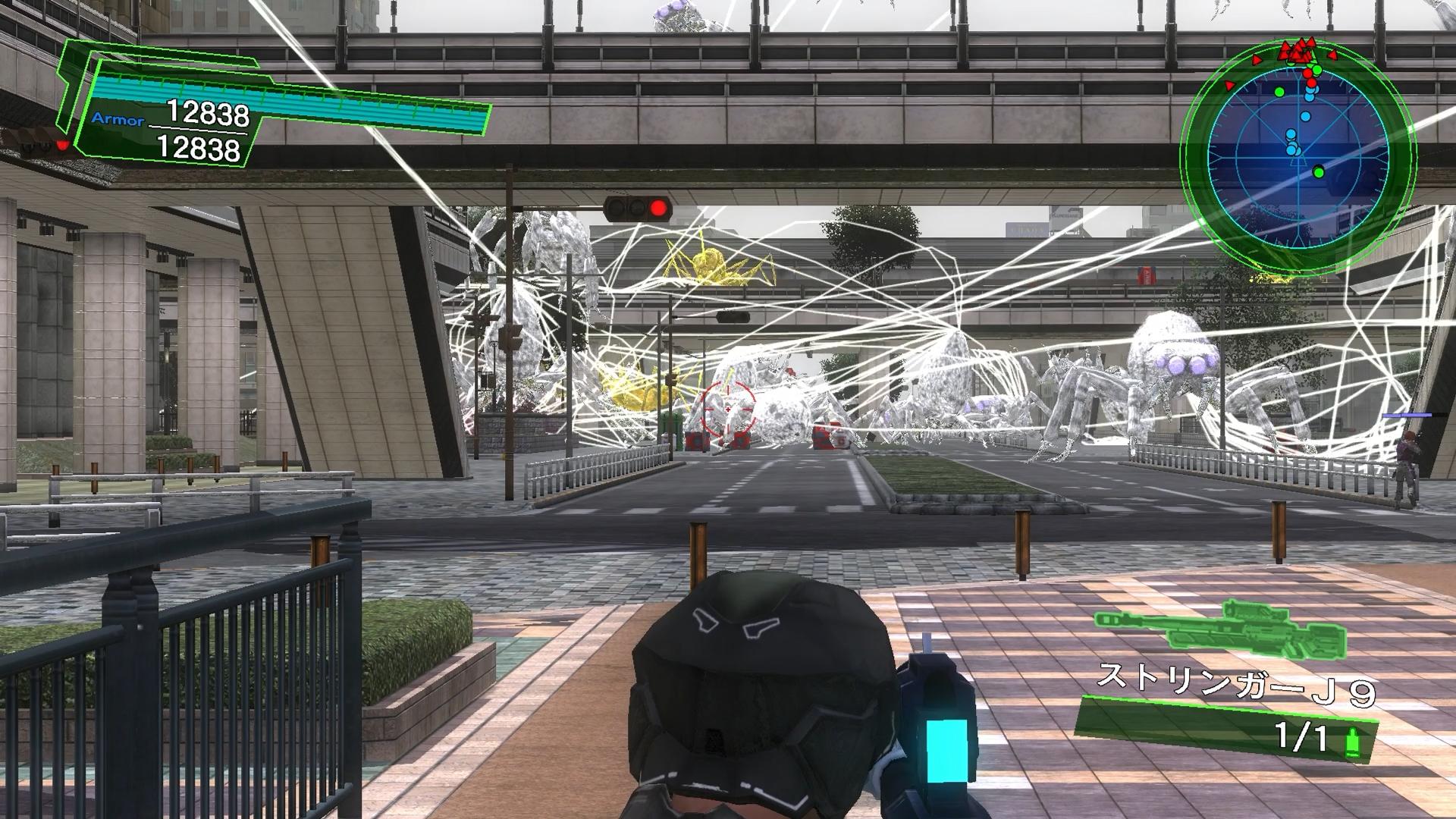 さて、このミッションでストリンガーJ9を使う場合の問題が、鎧蜘蛛を1発で倒せないということである。ご存じ、射撃間隔の長い狙撃武器において、“敵を1発で倒せるか否か”では、2倍の効率差が発生し、通常、その武器を採用するか否かの、最大の判断基準となる。しかし、そのデメリットを考慮したうえで、本ミッションでは、特に第1波と2波で敵が重なりやすく、貫通のメリットが勝るのだ。