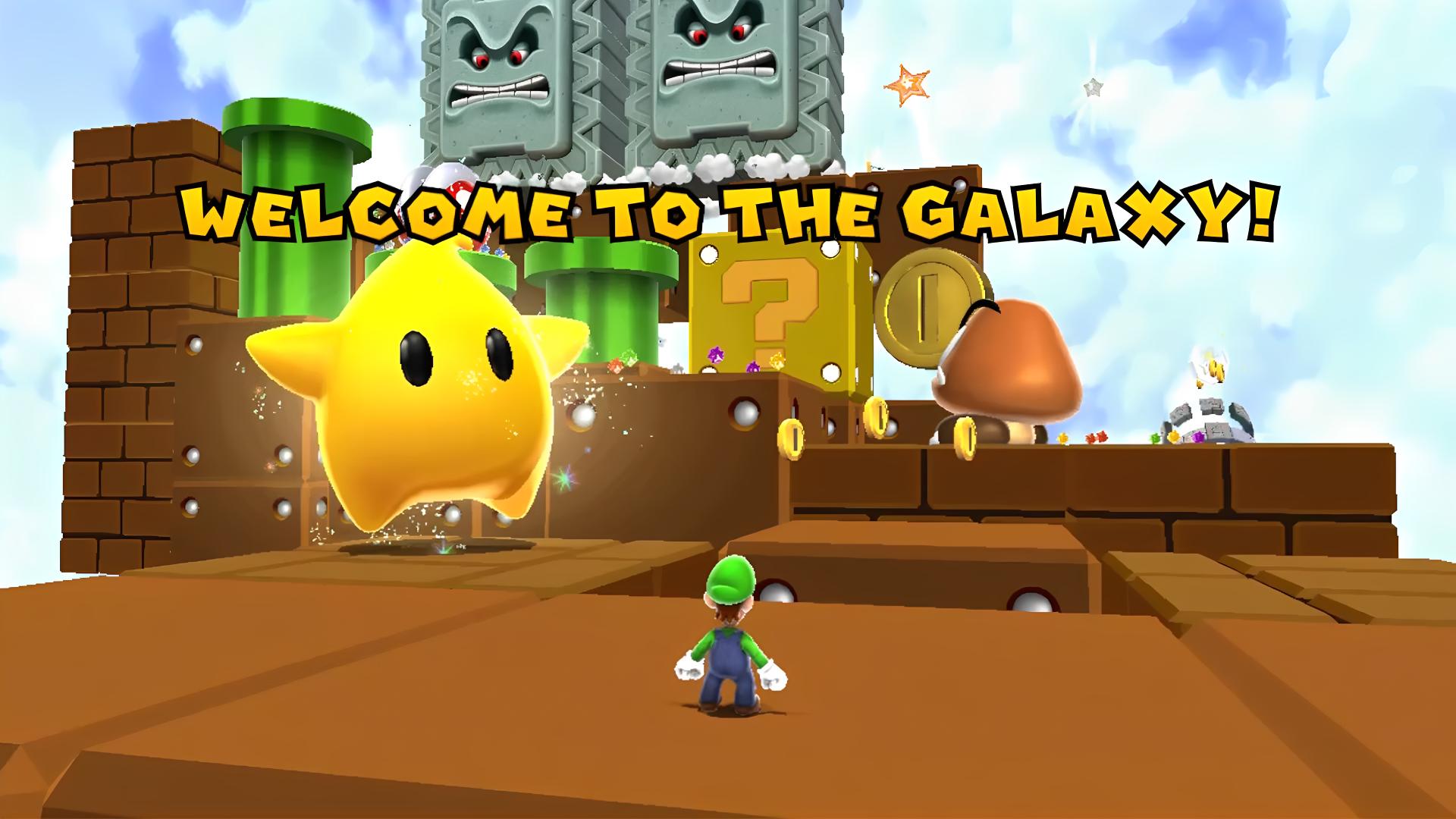 ★1:と思ったら、いま取ったのは2個目であった。開始直後で1個を見逃していたということになるので、キラキラ音の鳴るところをよく探してみる。マリオギャラクシーには、「右スティックによるカメラ回転は無効だが、主観視点は可能」という場面があり(両方できない場所もある)、ここもそうだったので試してみると、ステージ開幕のグルグル回る大コインの遥か上空に置かれていた。とても普通では届かない高さだが、反対側から三段ジャンプをして、更にスピンで滞空時間を伸ばすことにより、ギリギリで手が届いた。というか、これで届かなかったら取得不可能である。ちなみに、後から知ったのだが、これもステージ開始時の特殊構図で見えている。にくい演出である。