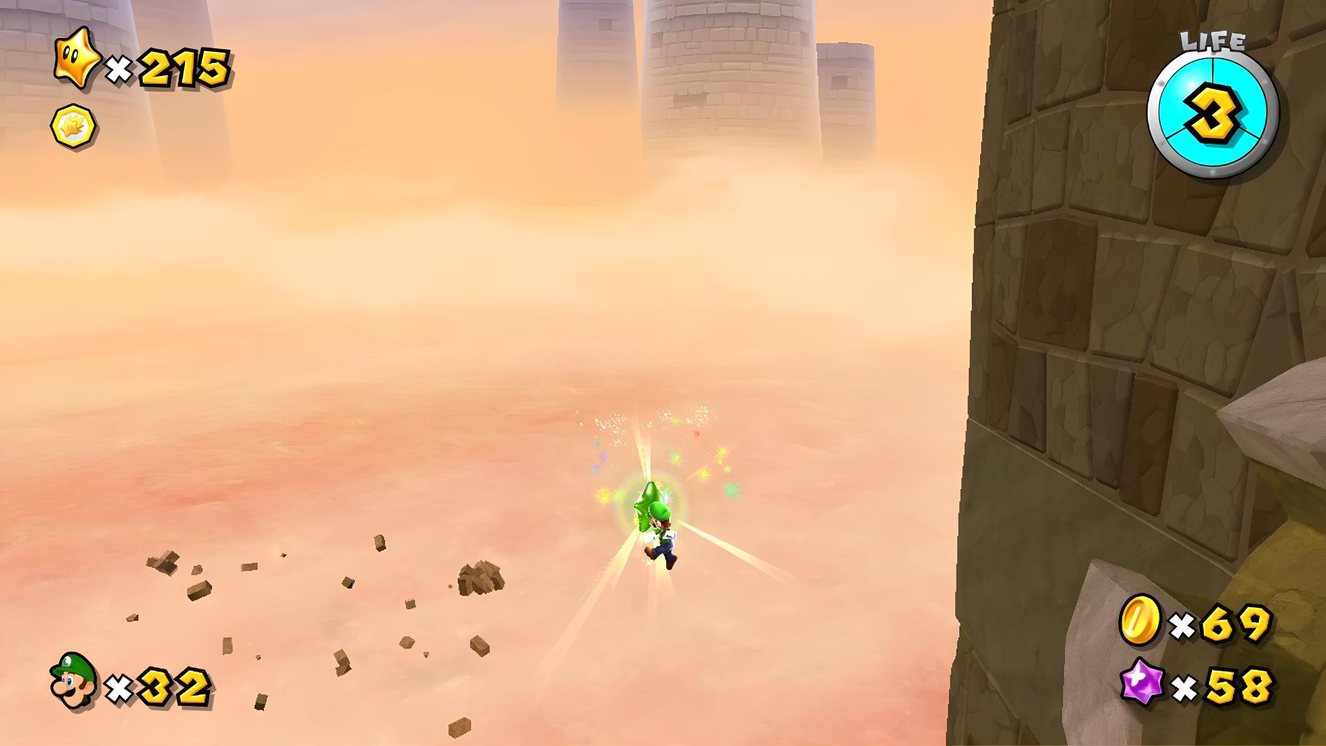 ★3:こちらは、ゴロ岩マリオになっての、ボーリング地帯に存在する。ただでさえ難しいコースの終盤、奥→手前と連続で跳ね返る場面の、手前に落ちながら取る位置にあり、立体把握も精密操作も極めて難しい。実質的に、適当に操作して取れたらOKという運ゲーになってしまう。まあ、この後、裏面ラストに挑むには、結局スターピース9999個を集めることになるため、それを稼ぎながら挑戦できるというのは、せめてもの救いだろう…。