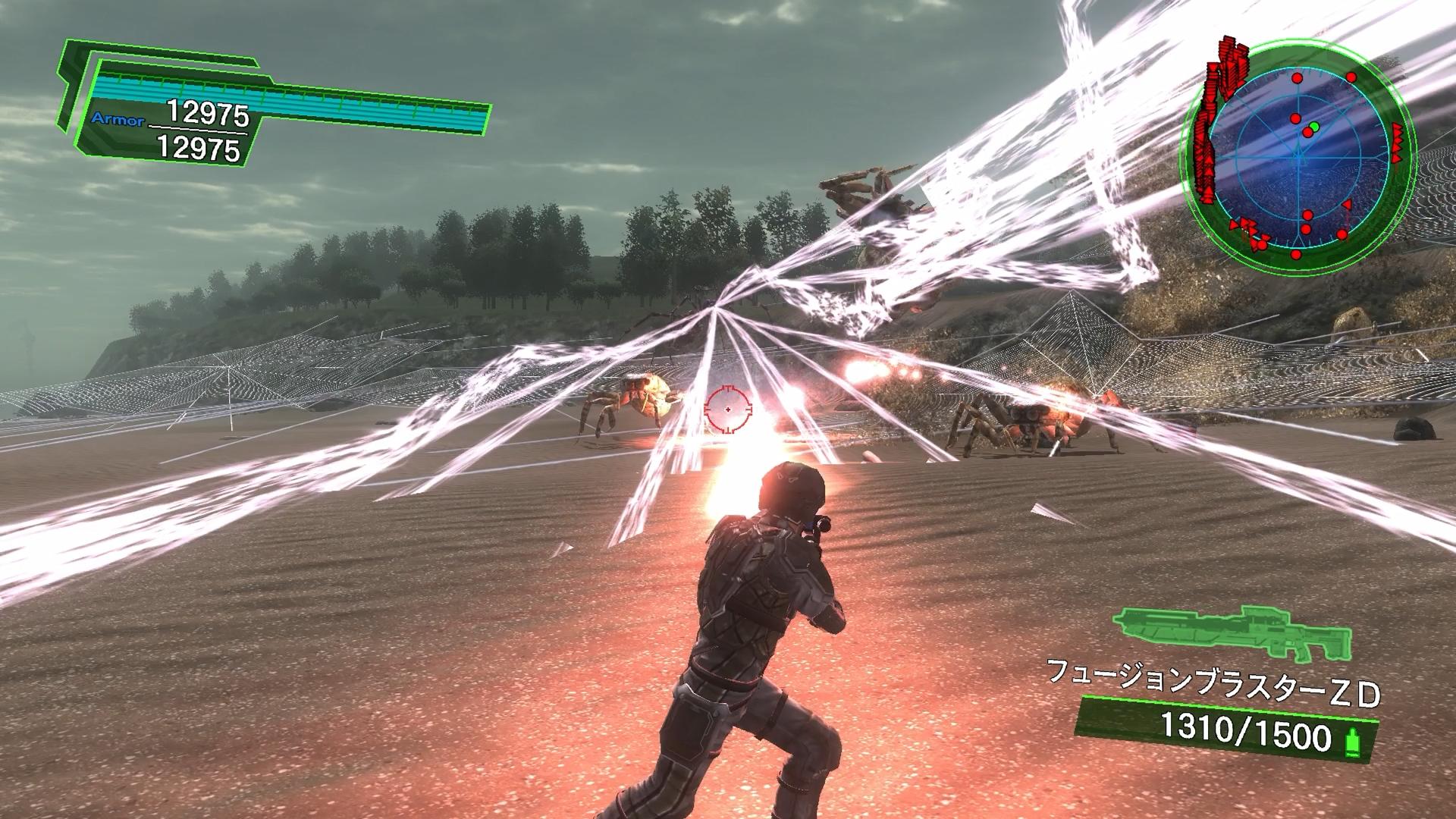 また、ディロイが海岸を封鎖するまでの制限時間については、そこまで厳しいわけでもないため、1個の巣穴を破壊した後は落ち着いて、アクティブになっている蜘蛛を、フュージョンブラスターとストリンガーで、全て倒しておく。序盤から登場する雑魚だが、このミッションでは、近接フルヒットで3000という、『2』時代に迫る火力を誇る。少量でも、生かしておくと危ないのだ。