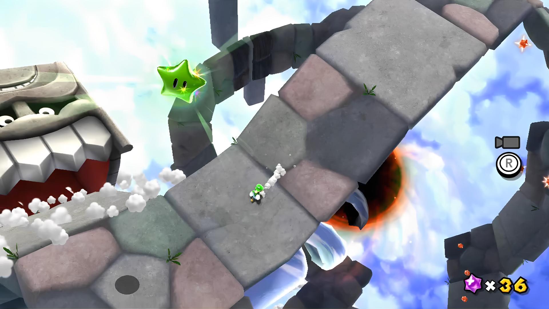 ★1,2:地獄リゾート「マリオサンシャイン」からの復刻ステージだが、そもそも「ギャラクシー」のほうが操作が軽快なうえ、落下対策の雲まで使える。そして、緑スターは、2つとも開始時のムービーで見えている。マジで何のためにこのステージを出したのか分からん。