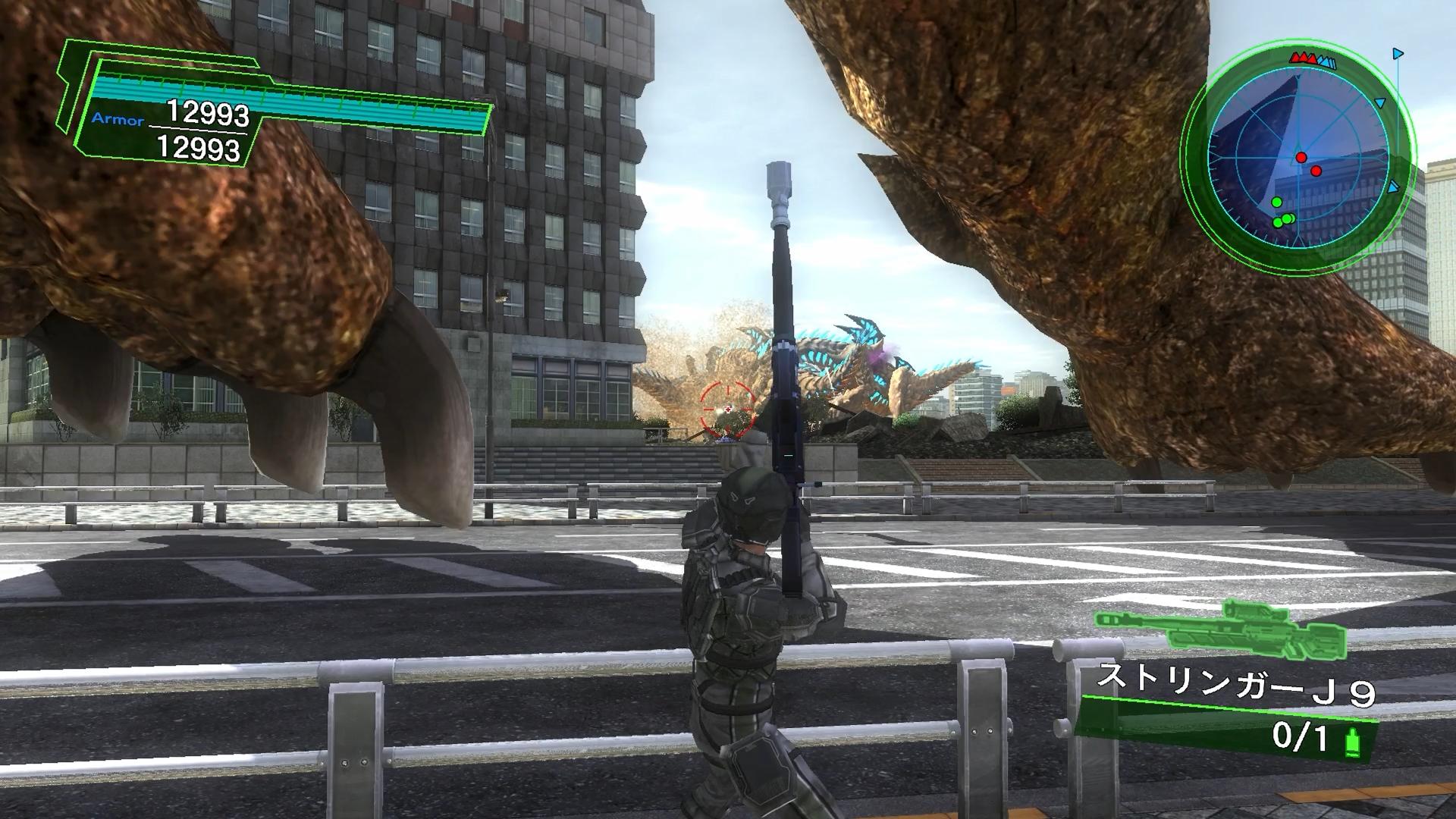 ちなみに、このミッションでは、途中でレールガン戦車1両が、そして最終段階では+3両が、それぞれ駆けつけてくれる。巨大で当てやすいうえに、どこを撃ってもダメージが入る巨大怪獣との相性は最高であり、プレイヤーすら凌駕するような圧倒的な火力を、遠距離から正確に叩き込んで、エルギヌスを一方的に屠ってくれる。いやあ、見た目は現実的な戦車とさして変わらないから、以前までは特に意識していなかったが、高難易度ほど輝くタイプだな。というわけで、フュージョンブラスターは1発も撃ちませんでした。
