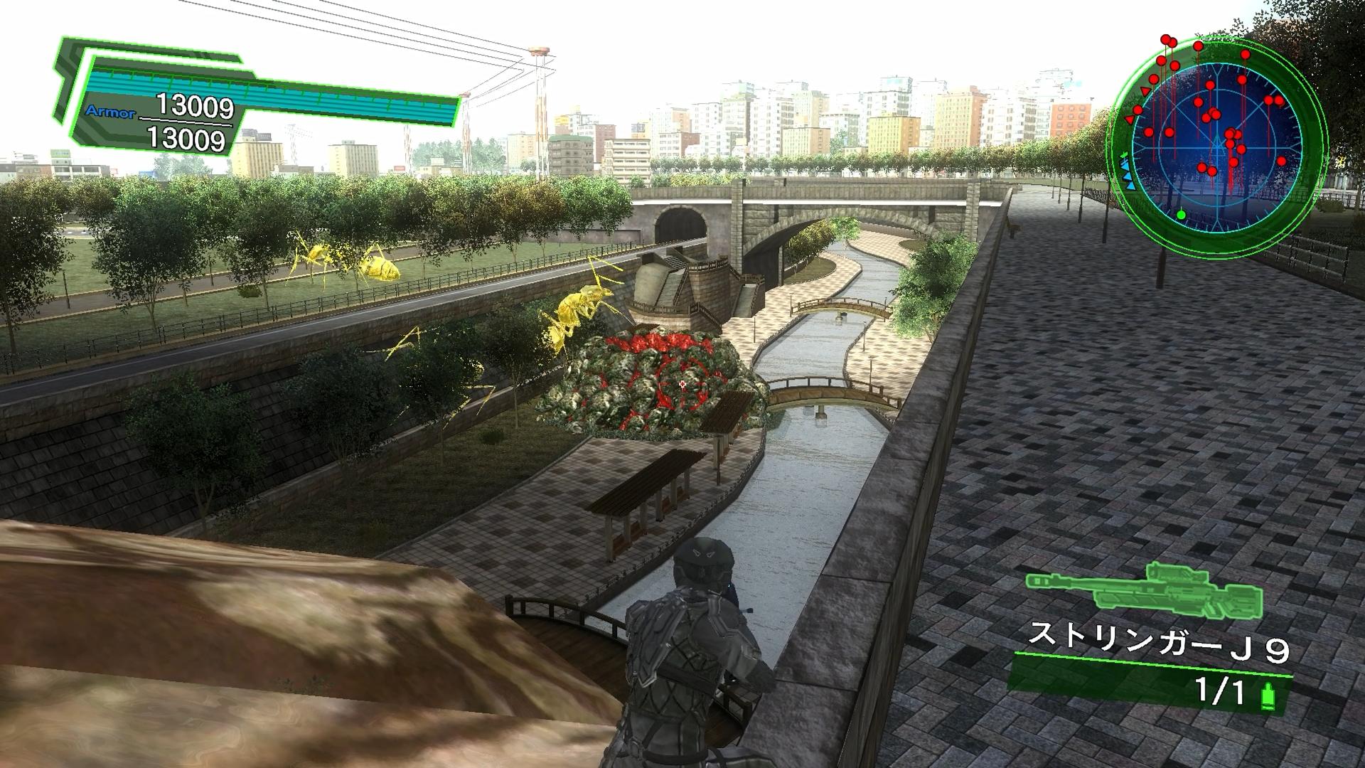 さて、まず、第1ボスにして、『4』で私を震え上がらせた金女王×2は、『4.1』でも健在だ。しかしながら、建物に引っかかるなどして、2体同時に登場せず、接近がかなり遅れることがある。この隙にストリンガーでいくら削れるかは、かなり重要なポイントだ。まあ、最終的にはフュージョンブラスターを取り出すことになるだろうが、その弾数をできるだけ節約していきたい。逆に、2体が最速タイミングで来訪し、同時討伐を強いられるようになると、なかなかきついであろう。