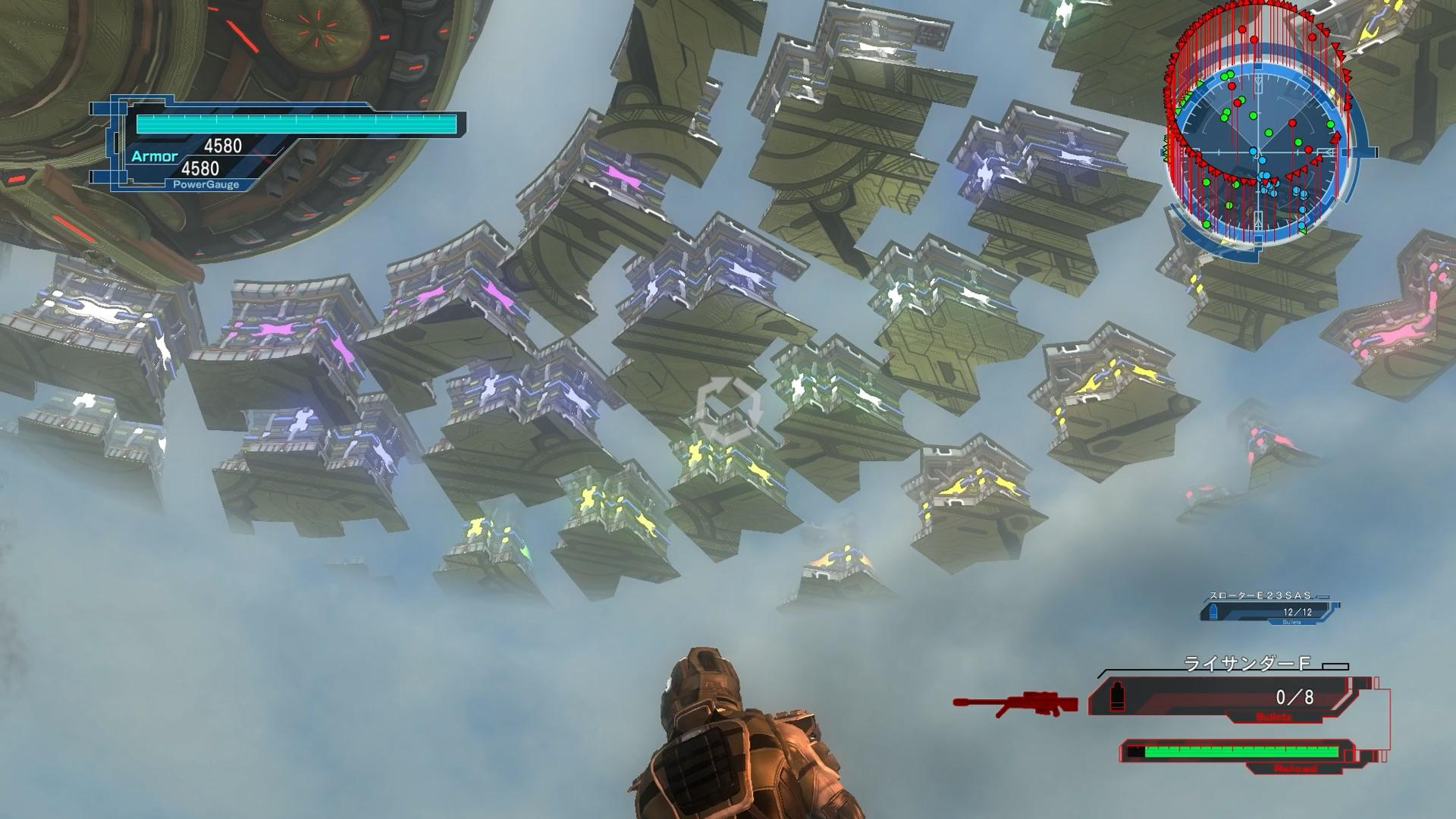 「第11の船」(※マザーシップ10隻+コマンドシップのこと)は、アクション的な難易度は低い。さすがにラストということで、色々な敵が出るものの、味方側の戦力も強力であるため、よほど武器を間違えるだとか、突出しすぎてコスモノーツたちの集中砲火を浴びるといった失敗がなければ、負けることは無いからだ。今回プレイでも、上を向いて射撃しながら回復を拾えるよう、「探知機5型」を装備して、あとは取り回しの良い武器で適当に狙撃をしていくだけで終わってくれた。