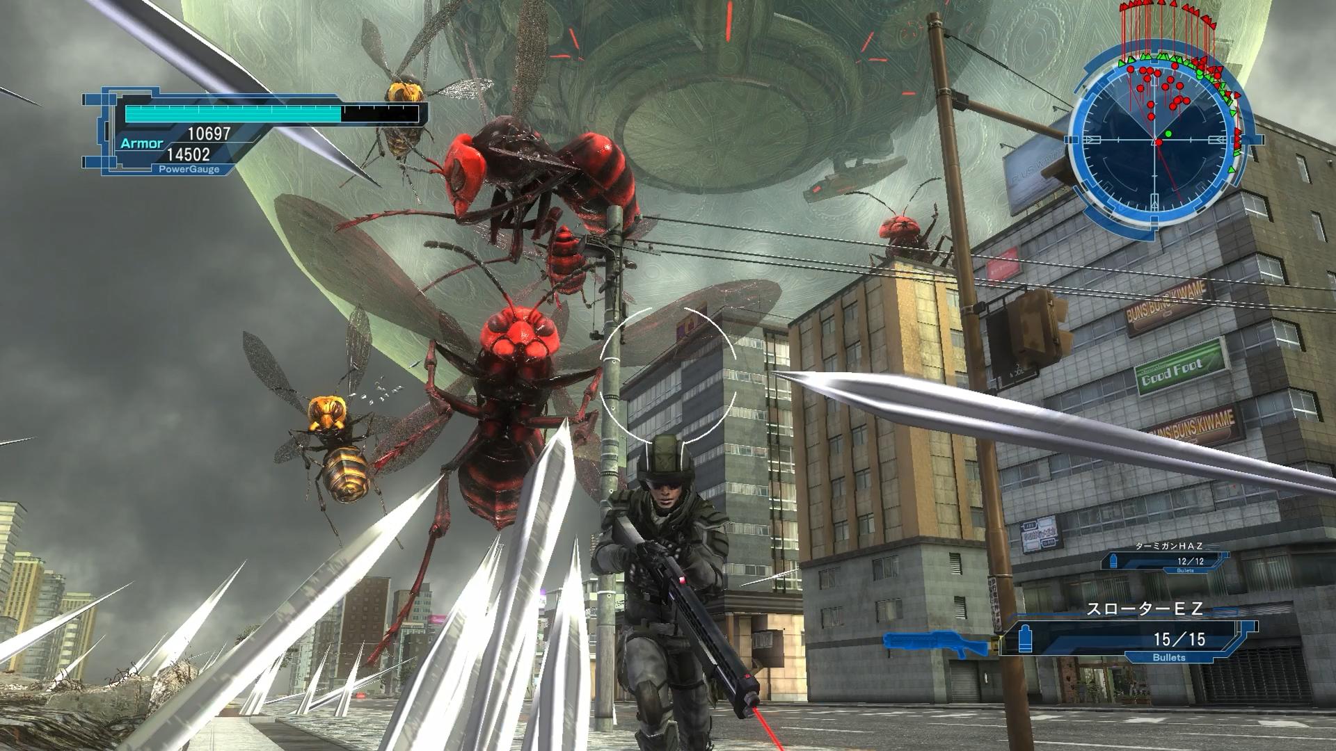 …その後、更に砲台を処理していると、4つのテレポーションアンカーが落下してくる。編成は、金蟻・蜂・黒蟻・赤蜂であり、総数36体とまずまずの戦力だ。味方が存在せず、回復アイテムの拾いにくいミッションであることも相まって、近接戦もできる武器を持っていないと、ここで普通に負けてしまう。そのための、スローターEZだ。ここを余裕で乗り切れるくらいの戦力が無いと、第3波では話にならない。