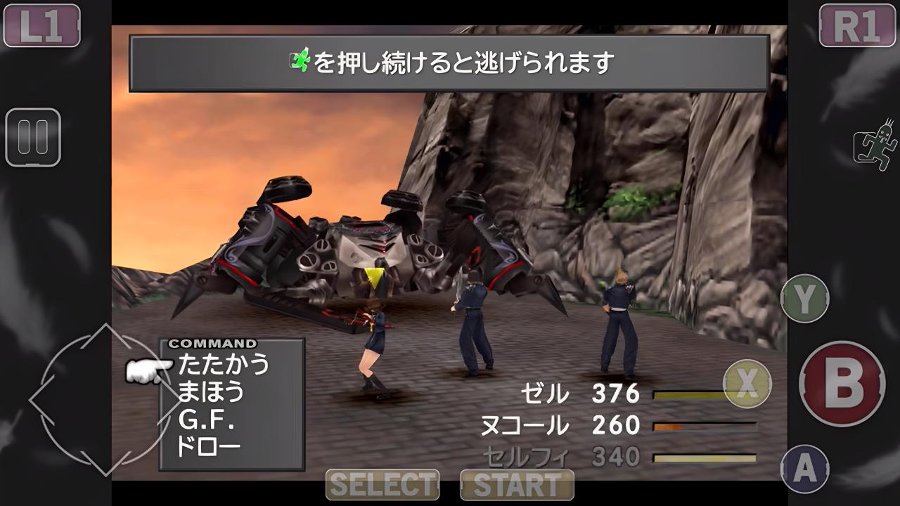 …というわけで、フルケアでの全回復後は、打撃のみで戦っていく。だが、スコールの「ガンブレードのR1入力」は、PS1版の時は普通に「敵を斬る瞬間」に押せばよかったのだが、リマスター版だと、それより早めの『無』を斬る瞬間で入力する必要があり、はっきり言って成功しない。もうこれはそういうものと割り切り、このバトルの後からは、ステータス画面から自動入力をONにしていくことにした。1/4の確率で失敗してしまうが、止むを得ないことだ。
