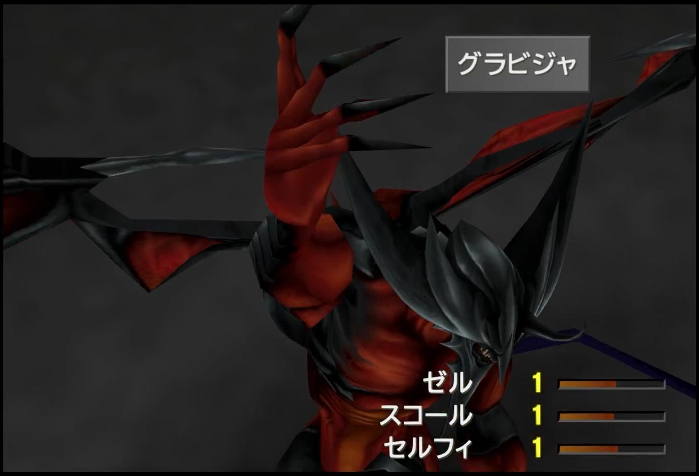 ――ちなみに、敵はHPが高いものの、割合ダメージの使い手なくせに自分自身も割合ダメージを無効化できない。よって、ジャンクション封印下では、ゼルの「メテオストライク」を何度も当てていく戦法が最適だ。また、通常プレイであれば、“グラビデをドローして使う”のが良いのだが、この際、使用法を工夫することで、更に有利な状況に持ち込むことができる。
