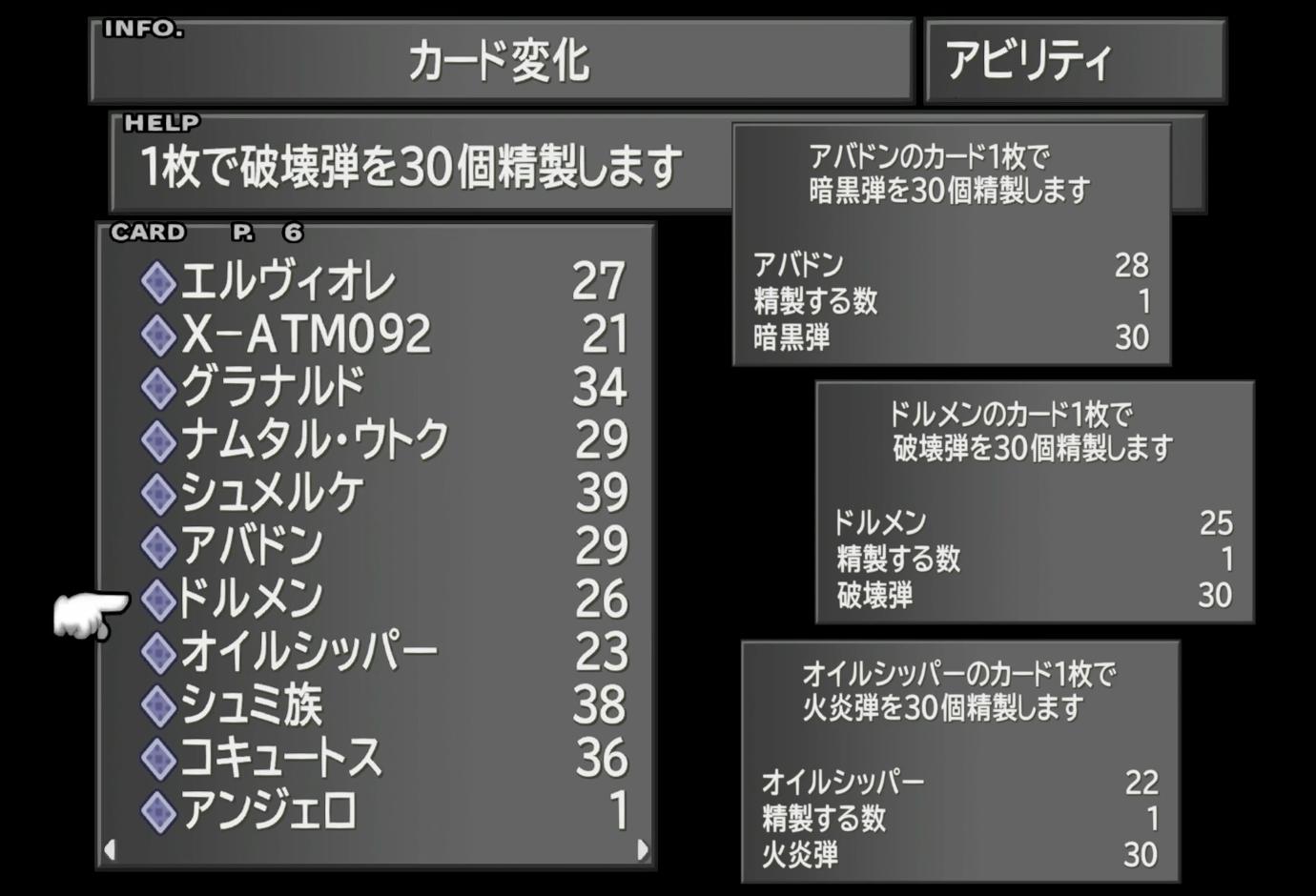 ところで。ここでは、何枚のカードを集めていくべきだろうか。冒頭のバラムで、カードを100枚近く集めたのには、「トライフェイス×100」「呪いの爪×100」「ダークマター
