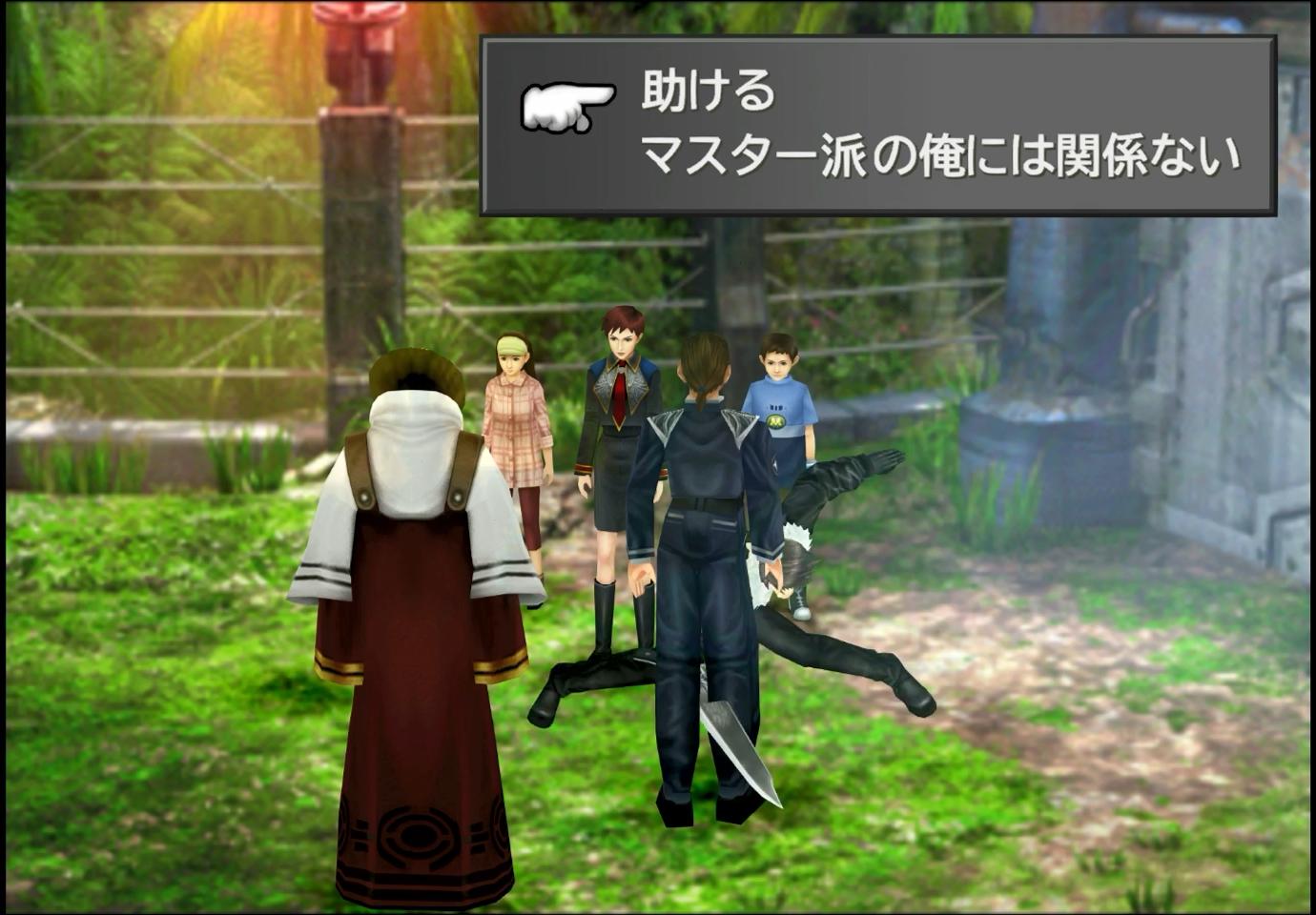 ――そして。ガーデン内部では、攻略の基本として、マスター派を選んでいく。理由は簡単であり、そのほうがバトルの回数を減らせるからだ。ストーリー的には、この内紛イベントでの会話がちょっと変わるだけであり、すぐに物語は収束する。報酬アイテムが貰える場合もあるが、安価な消耗品である。強いて言うなら、訓練施設でマスター派を貫き、ぐるぐると走り回っている青いTシャツの少年を見殺しにしてしまう(※死んでいない)ことで、「コモーグリ」のカードを出す確率が半減してしまうというデメリットがある。が、ガチ勢の人は、イフリート撃破後にすぐ奪い取り、カードクイーンとトレードするなど、とっくに運用しているカードであろう。むしろ、復活イベントがちょっと特殊なので、得をしている感すらある。