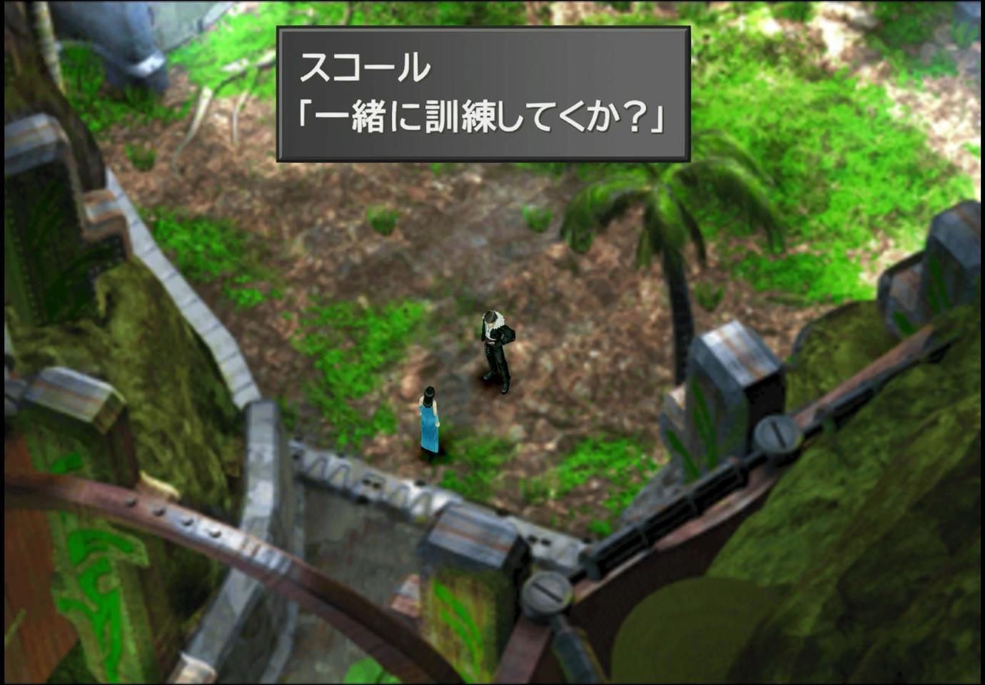 ――そして、今回は、主にムービー目的でガーデンチームにリノアを入れているため、寝起きに声を掛けにきてくれるのはリノアだ。直前の内紛とやることが被ってしまうものの、ガーデンの施設をリノアに案内するという内容であり、ちょっとしたデートイベントとも言える。目玉はもちろん訓練施設であり、伝説の名言「一緒に訓練してくか?」が聞ける。こういうことを自然に言えるのは、もう才能だよ…。