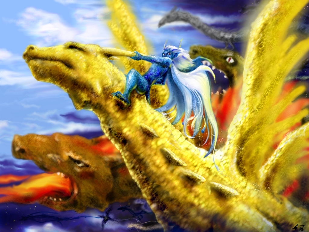 龍 王 使用ソフト : Painter Classic 1.0J サイズ : 104KB(JPEG) 規模 : 716×573ピクセル 作成日 : 2003.09.下旬.〜 2004.03.22. 制作所用時間 : 12間くらい 縮小前高画質のサイズ サイズ : 499KB(JPEG) 規模 : 1024×768ピクセル |