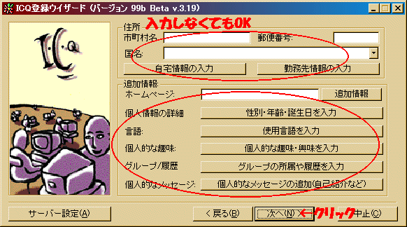 入力しないことをお勧めします。『次へ』をクリックしてください。
