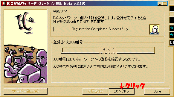 ICQ本体のインストールとICQの日本語化が終了したらユーザー登録をしましょう。