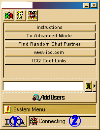 ICQを起動すると次のような画面が表示されます。 @のICQのボタンをクリックします。