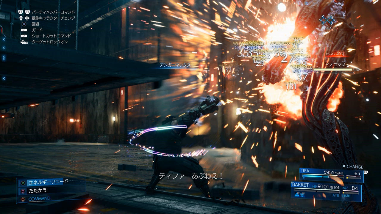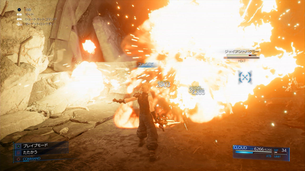 …その後、レノの第2段階では、オリジナル版でも印象的な行動だった「ピラミッド」で味方を拘束してくる。このピラミッドに「みやぶる」を掛け忘れたり、みやぶるマテリアを装備したキャラが拘束されてしまったりで、何度かやり直しました…。戦い方としては同じで、バレットが相手を大きくひるませて、他のキャラクターがATB技を使っていく。ちなみに、こう書くとバレットは相手をひるませているだけみたいに思えるが、普通に与ダメージも大きい。
