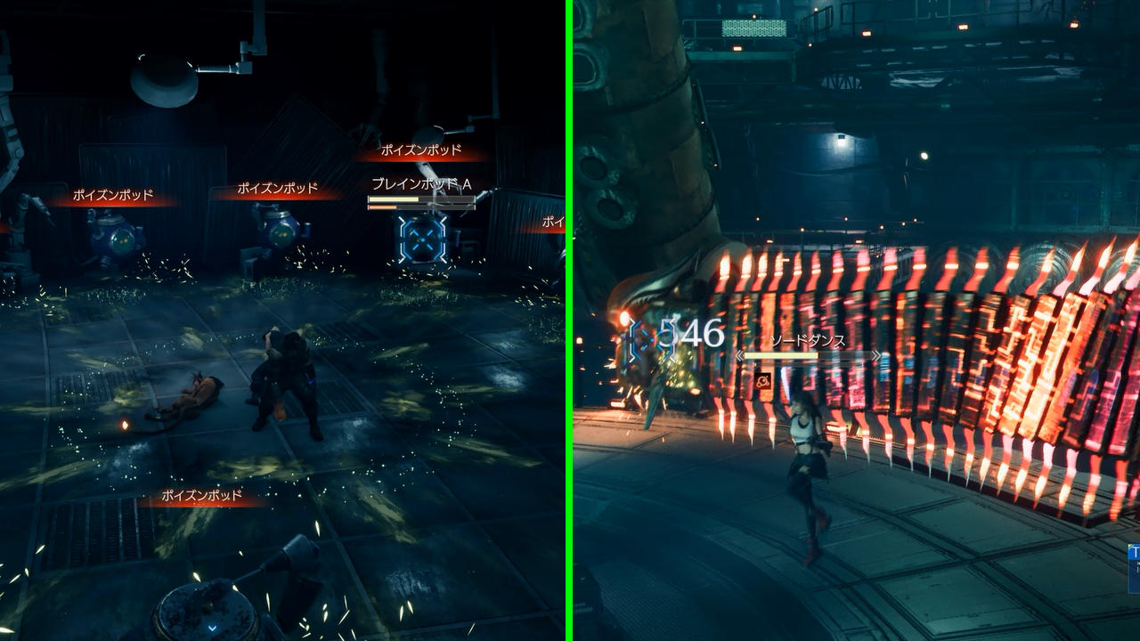 「ストライプフォリッジ」:飛行タイプの敵で、何ということの無い相手であるが、途中で使用してくる「グラビガ」は、「現在HPの75%の割合ダメージを全体に与える」という攻撃だ。しかしながら、ハードモードでは共通して被ダメージが1.4倍になるため、合算して「現在HPの105%のダメージを全体に与える」という史上最悪の技と化している。ただし、割合ダメージ扱いということでHPの減少は1で止まり、ティファのHPが残ったところを見ると「三日月チャーム」(非操作キャラのときダメージ20%減少)による軽減も可能なようだ。グラビガ以外の他の攻撃は全く怖くないので、「いのり」でゆっくりと回復しつつ、バレットの銃撃を主力として撃破していった。