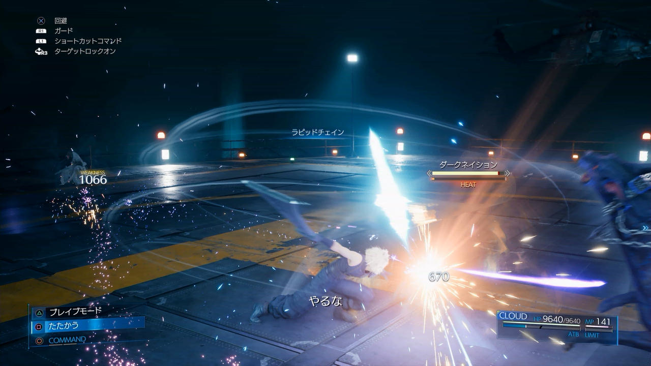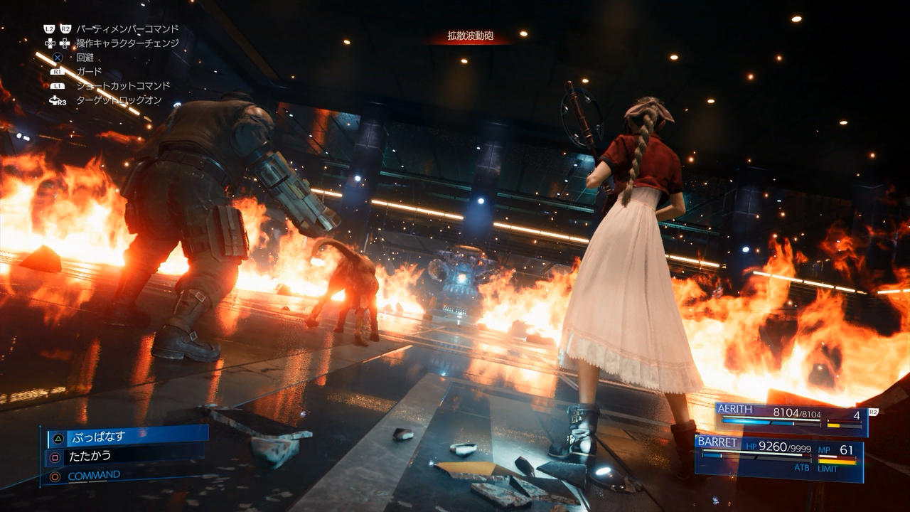――ちなみに、本バトルに参加しないティファについては、原作と同じく「一度は屋上から降りていったが、クラウドが心配になり、エアリスたちと別行動をする」というふうに動いているのだが、そのシーンがリメイク版ではバッサリ省略されたため、「急にティファが屋上に現れ、逆にエレベーターにはバレットとエアリスしかいない」という、どこか違和感のあるシーンになってしまっている。