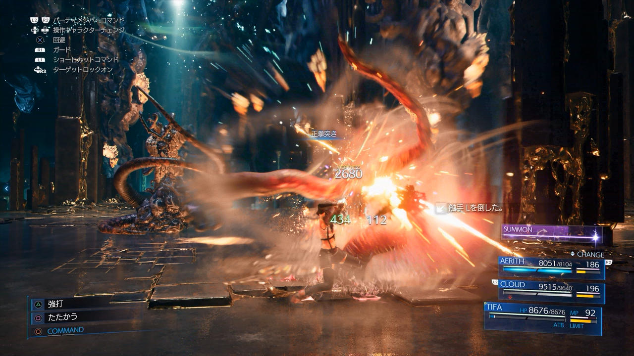 ――なお、戦闘メンバーは、クラウド・ティファ・エアリスの3名である。バレットは刺されて死亡中だ。まっすぐ心臓を狙っている辺り、確実にプロの犯行と言える。なお、ほとんどの人が、心臓は左にあると思っているらしいが、そこに存在するのは肺である。