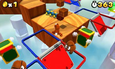 …まず、3DSのグラフィック性能は、3D立体視(あまり使われていない…)に全振りをしたためか、見た目はかなり控え目となっている。しかしながら、「3Dランド」は3DSの性能を理解したうえで、記号的かつ原色を多用した分かりやすい画面作りをしており、プレイに支障を感じることは無い。また、固定カメラ型のアクションというのも、「マリオ64」や「サンシャイン」のようなフルスペック路線を望んでいると肩透かしであるものの、「任天堂の、特に携帯ゲーム機を好んでプレイするユーザーの層」や「3DSの操作性」などを考慮して、ちょうど良い落とし所に持ってきたと考えられる。また、不人気な3D立体視機能も、“だまし絵”のようなブロックの配置など、他ゲームよりは有効活用した場面が多い。