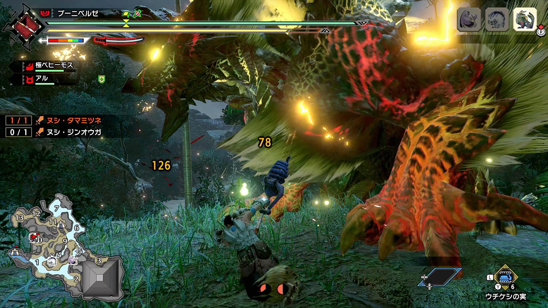 ちなみに、難易度としては、基本的に緩く、適当に攻撃して、喰らったら「受け身→回復薬」で誰でもクリアできるRPGゲームのようなバランスとなっている。そのため、途中まではゲーム性が消えかけているような雰囲気すら感じたが、さすがにストーリー終盤からクリア後は、それなりに難易度が上がっていった。また、最後の最後で追加された「ヌシ」という6種類の強化個体については、本作が忘れかけていた悔しさを一点集中させたようなモンスターとなっており、久々にモンハンらしさを感じることができた。