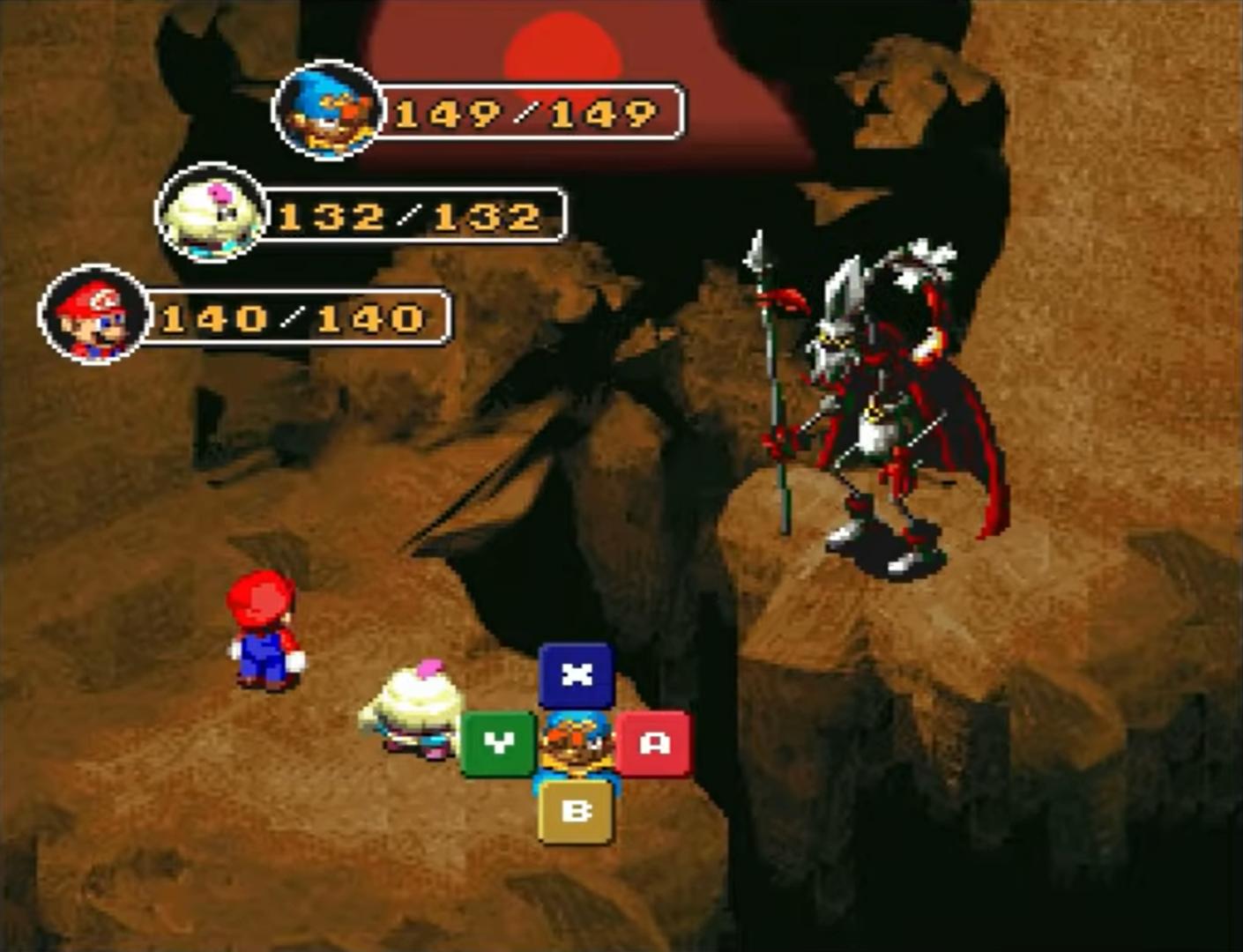 さて。その「スーパーマリオRPG」の内容はと言うと、FF6とFF7の間という、旧スクウェアに脂の乗っていた時期であるうえ、任天堂ゲームの人気も今以上に圧倒的なものであり、しかもカートリッジ側に追加チップを搭載して性能UPを実現していたため、量・質ともに最高レベルのクオリティとなった。