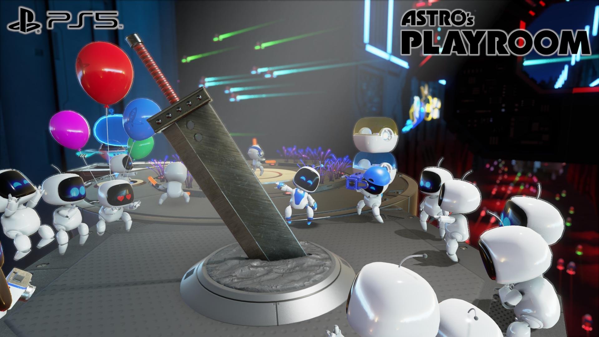 …その内容は、主に、主人公と同型ロボットのアストロたちが、対象ゲームの名場面を真似している…というものである。具体的なタイトルは、「サルゲッチュ」「クラッシュバンディクー」に「アンチャーテッド」「ホライゾン」「デス・ストランディング」といったソニータイトルはもちろんとし、他社製ゲームのネタも登場している。例えば、FFシリーズなら、クラウドのバスターソードが地面に刺さっており、それをアストロたちが取り囲んでいる…という場所が存在する。私はFFシリーズの顔はライトニングさんだと思っているのだが、さすがにそれは叶わなかったか…。その他、「ダンボールに隠れているアストロ」「上下左右の矢印の上で、激しくステップを踏むアストロ」「骨付き肉を囲み、4人で携帯ゲーム機に熱中するアストロたち」など、有名タイトルの小ネタたちが、絶妙な感じでばらまかれている。