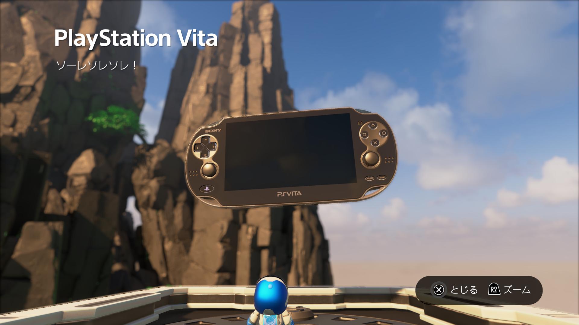 …まず、本作は、PS5本体のパーツをモチーフとした、4つのワールドで形成されており、それぞれのエリアに「アーティファクト」「パズルピース」という収集要素が存在する。このうち、「アーティファクト」では、3Dモデルで、「PS1〜4の、4つのハード」と「その周辺機器」が表現されている。その中には、4世代に渡るそれぞれの本体はもちろんとし、同時期に登場したPSP・Vitaなどの携帯機、メモリーカードやポケットステーションといった旧ハードで使われていた媒体、マウスやマイクといった周辺機器、更には神ハードPSPgoなど、様々な物が存在する。