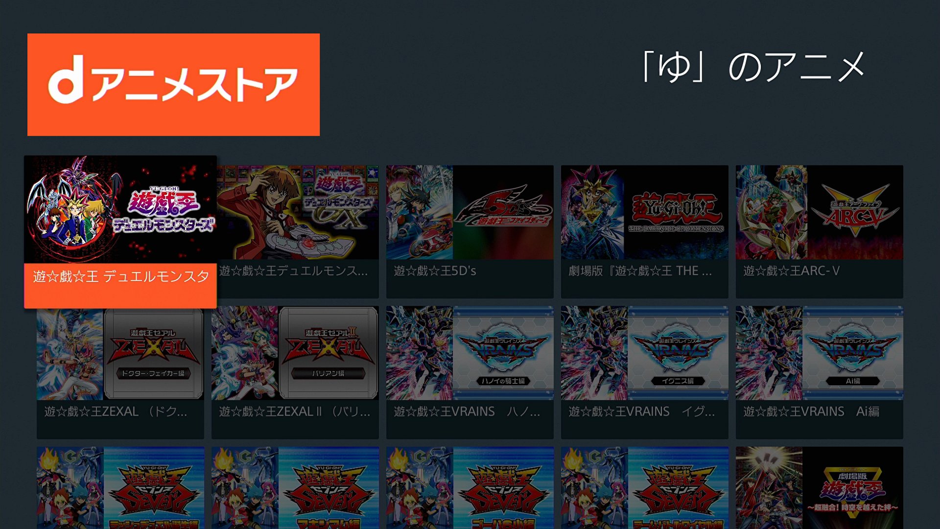 そういうわけで。色々と問題点は少なくないものの、とりあえず、「dアニメストア」と契約をしていれば、遊戯王シリーズの第1作/「デュエルモンスターズ」から、放送中の第8作/「ゴーラッシュ!」まで、全てを見ることができる。