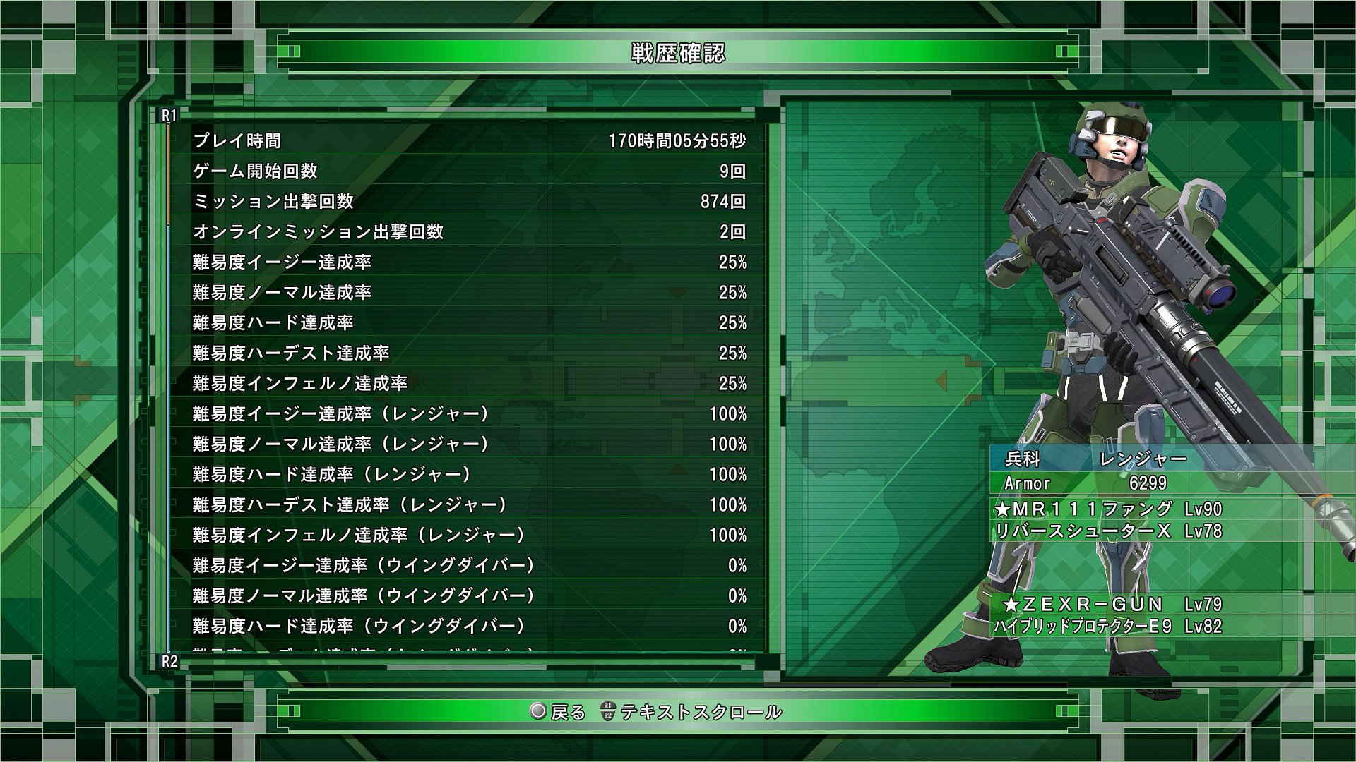 というわけで。今作「地球防衛軍6」のINFERNO攻略も、大いに楽しませていただいた。繰り返しとなるが、この中毒性こそ、地球防衛軍シリーズの大きな魅力である。私は結局、発売1ヶ月で、170時間を遊ぶことになった。この時間には、放置稼ぎは…今回は少し含まれているのだが、それでも多分、3時間くらいしか増えていないので、平日を含みつつ、1日平均にして5〜6時間をプレイしていったことになる。
