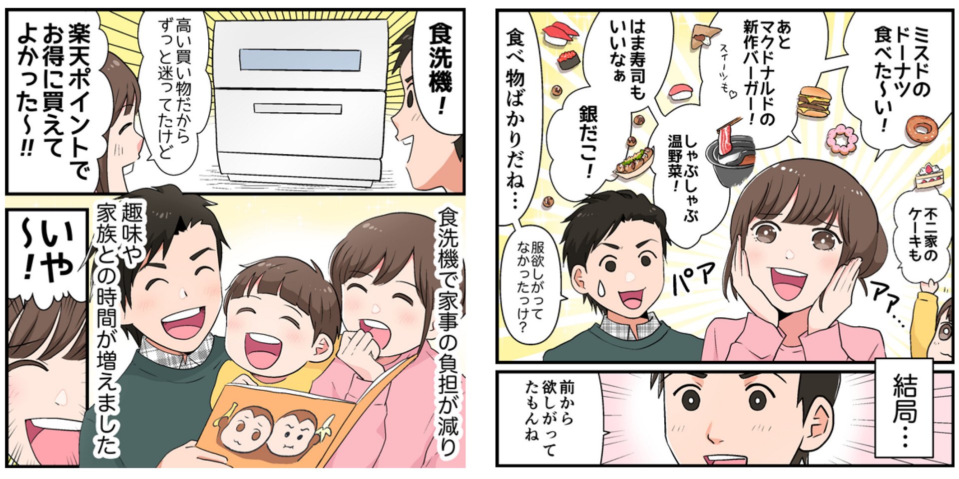 …しかしながら、楽天公式が配信している【ポイ活漫画特集】なる虚無コンテンツを見てみると、どうも彼らは、「ポイントが溜まったから、ふだん買わないような物を買っちゃおう!」という使い方を推奨しているようだ。しかし、これについては、私は反対である。1ポイント=1円で等価なのだから、必要な物ならば現金でも即座に買うべきだし、不要ならポイントであったとしても消費すべきではない。厚切りもそう言っている…(【日記:2023/9/10】)。