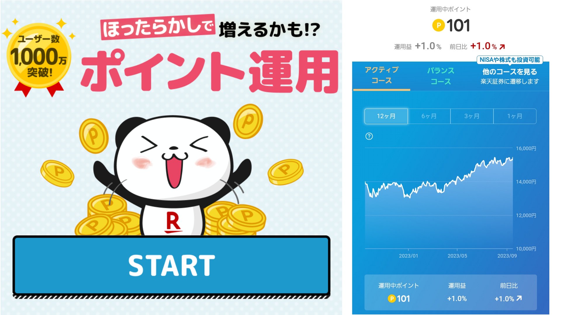 と、そんな感じに思っていたのだが、更に加えて、私は、楽天には「楽天ポイント運用」という面白いサービスが存在することに気付いたのだ。非常にややこしいが、ポイントを現金扱いとして金融商品を購入する「楽天ポイント投資」とは別枠である。