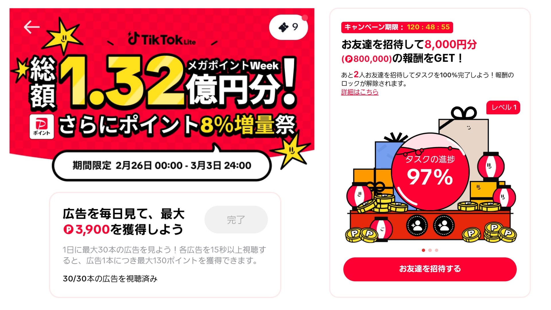 …ちなみに、その通常ポイントを得るための“ポイ活”として、新たに「TikTok