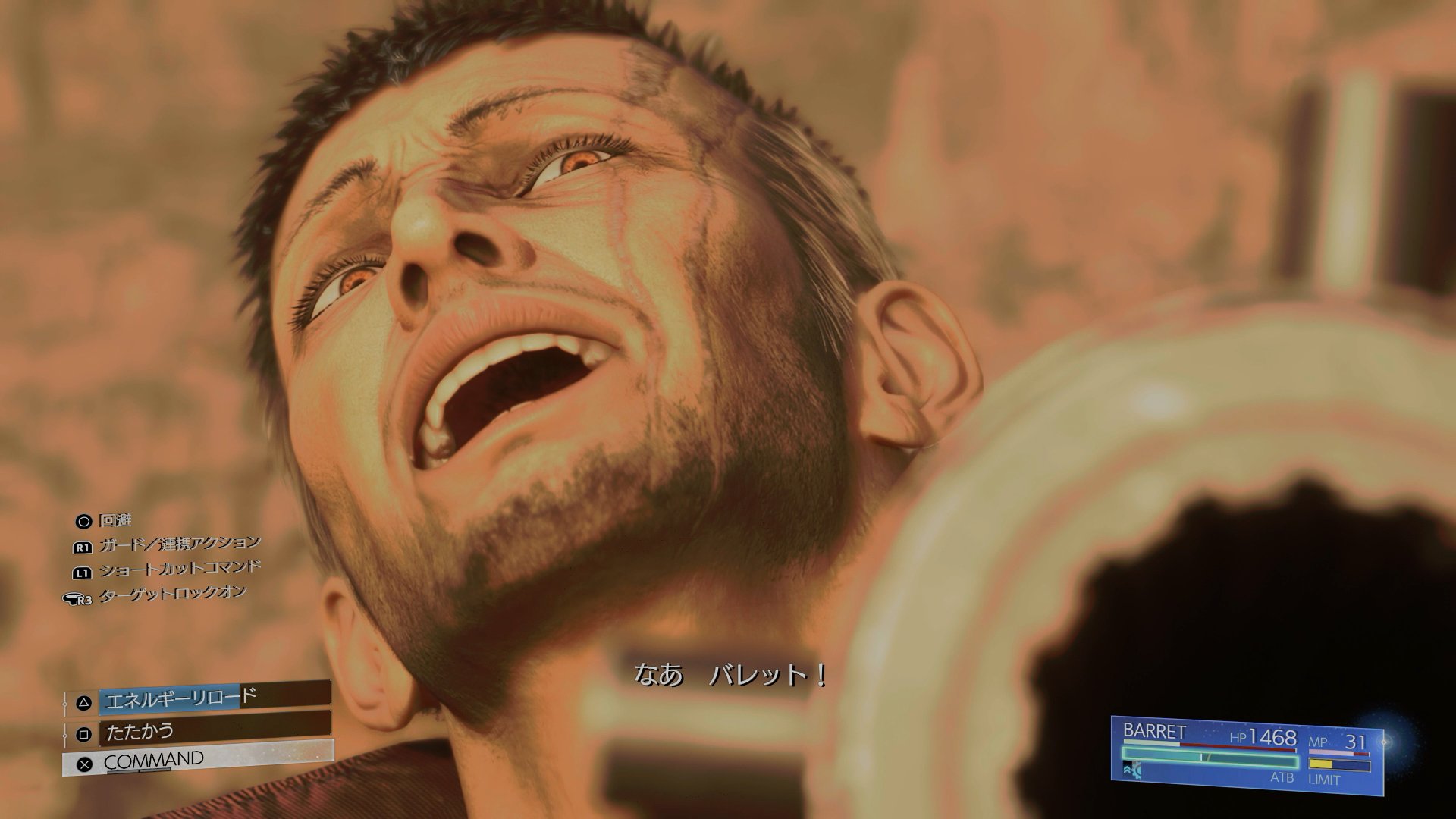 …まず、このバトルは、原作と同じく、バレットとダインの一騎打ちとなる。両者ともに、「片腕が銃の男」であるため、序盤は障害物を挟みながら、銃や爆弾を使った、まだ現実的な範囲での戦いとなる。FF7リメイクシリーズは、アクション性の高い戦闘システムを採用しているとあり、銃撃メインの戦いということで、この時点で、凄くメタルギアソリッド3っぽい雰囲気を感じていた。