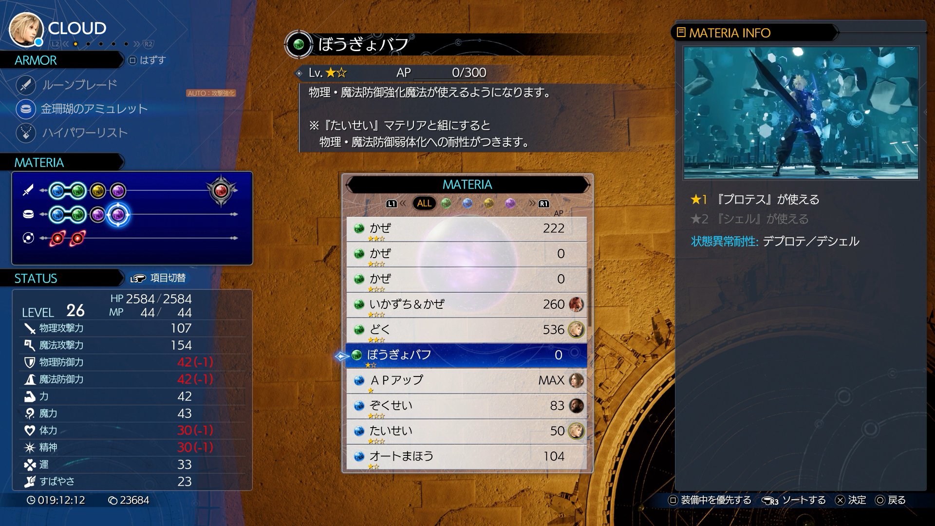――そして、このダンジョン攻略における特徴は、男女でチーム分けをして進めていくことのようだ。序盤戦は、クラウド/バレット/レッドXIII/ケット・シーの4名の中から3人を選んで戦っていく。そして、後半戦は、どうやらティファ/エアリス/ユフィの3人娘で攻略をしていくらしい。最初に、女性陣が村に置いていかれたのは不自然に感じたが、これがやりたかったのだ。というわけで、明日は女性パートから初めていくことにする。