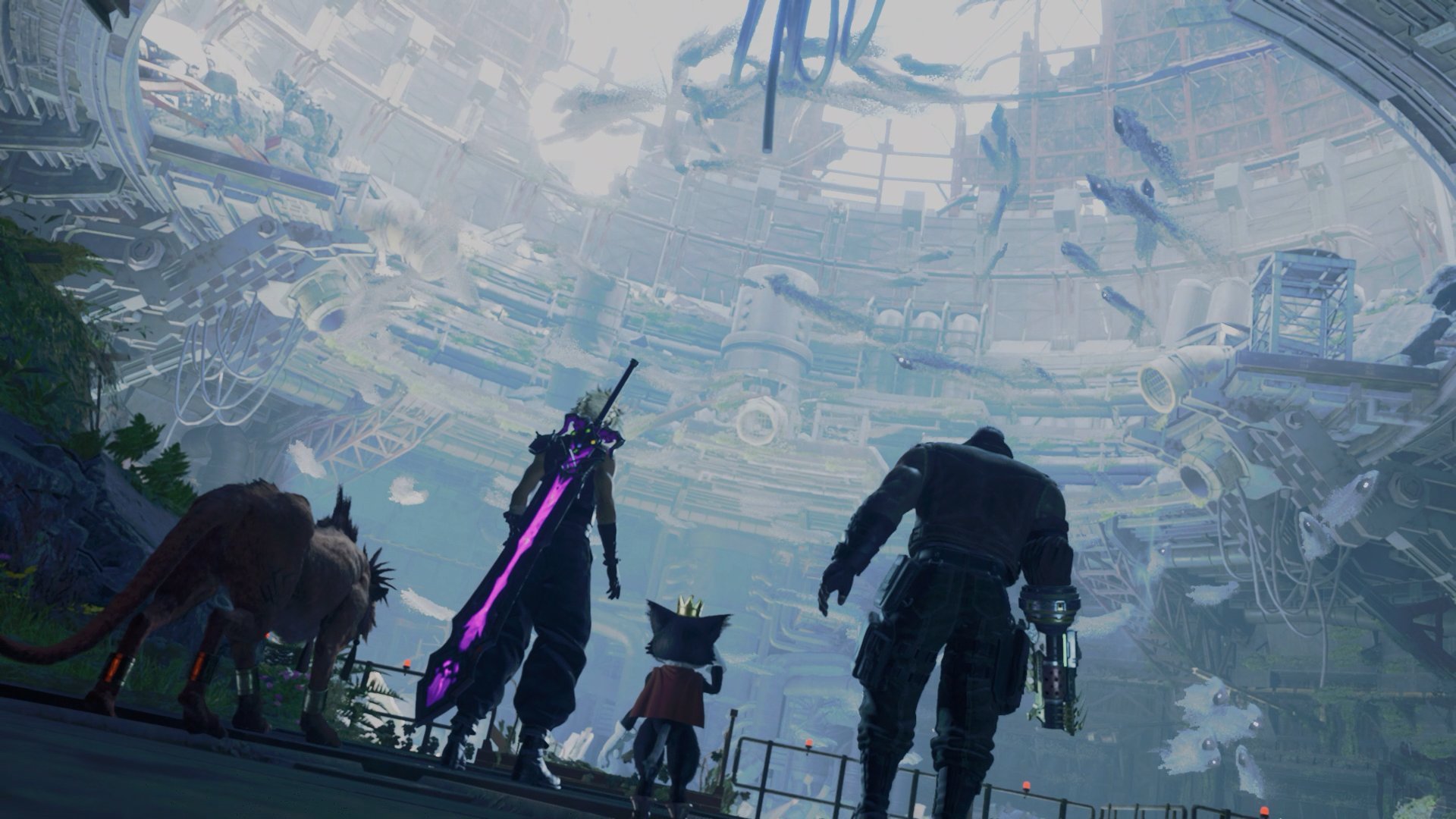 ――しかしながら、「FF7リバース」では、それが、“第3章”という1枠を割り振るに値する、1大ダンジョンとして拡張されている。グラフィックが強化されたことは当然とし、世界観的な設定も肉付けされた。そして、ゲーム要素としては、原作には無かったボス戦が2回も用意されたうえで、パーティを分割して5人全員が活躍できるような要素まで用意されている。このような作風は、リメイク第1弾で目立ったが、第2弾でもそれは続投ということだ。