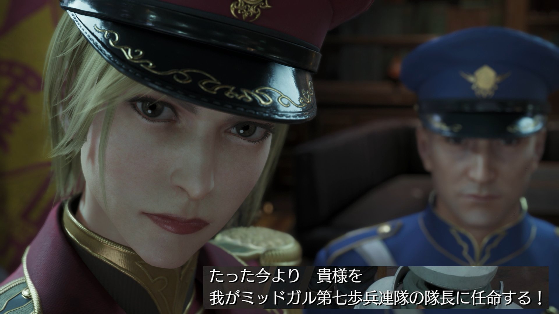 …さて、ここでは、通りすがりのクラウドさんが、いきなりパレード舞台の指揮を任されるという、頭のおかしな展開になる。ちなみに、それを命じた女性兵士は、字幕では「指揮官」と名付けられていたが、その場の判断で隊長を命じるということで、もはや連隊長しかあるまい。
