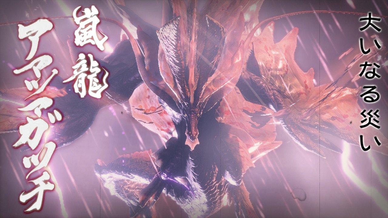 緊急クエストで、しばし前から名前が出ていた「アマツマガツチ」に挑んでみた。ご存じ、懐かしの『ポータブル3rd』(PSP/2010年)のラスボスモンスターであり、東洋風の竜の姿で、嵐を起こす能力を持つ。