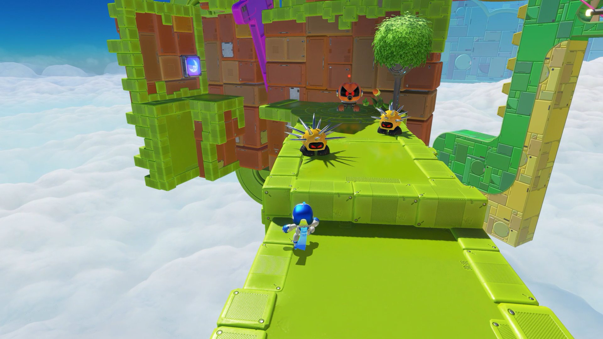 アストロボットは、第3エリアのコンプリートへ足を進めた。予想通り、第2エリアの△ボタンに引き続き、今回は「◯ボタンの試練」が登場した。