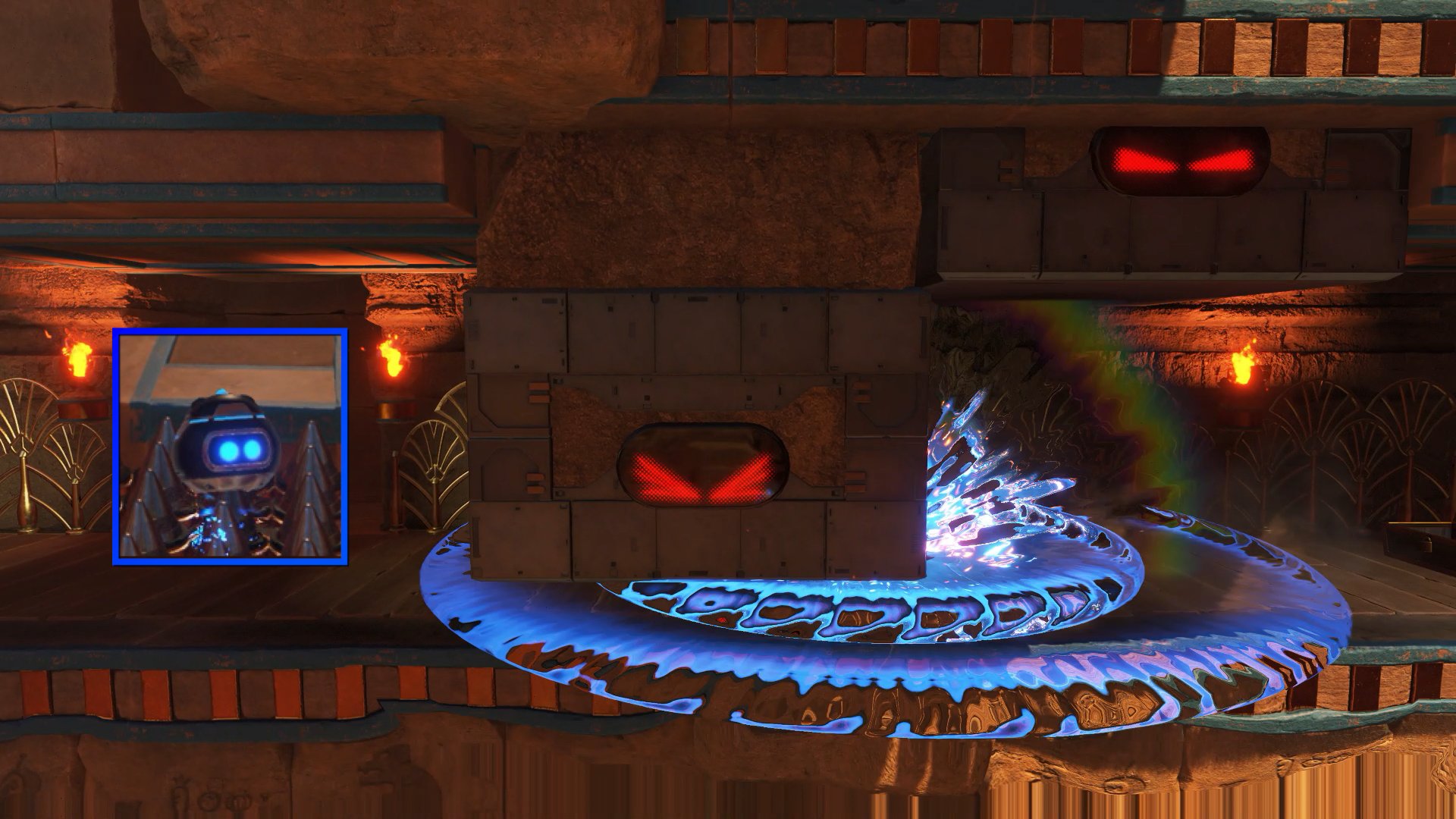――では、どうすれば良いのかと言うと、「忍び足で進み、プレス機に気づかれないようにする」が答えであり、同場所に存在するボットがヒントをくれている。ただし、その後にステージを進め、鉄球に変化できるようになってから戻ってきてもOKであり、その場合、潰されても跳ね返すことが可能となる。1つのギミックに、2つの攻略法が存在するのだ。ひょっとしたら、他のやり方もあるのかもしれない…?