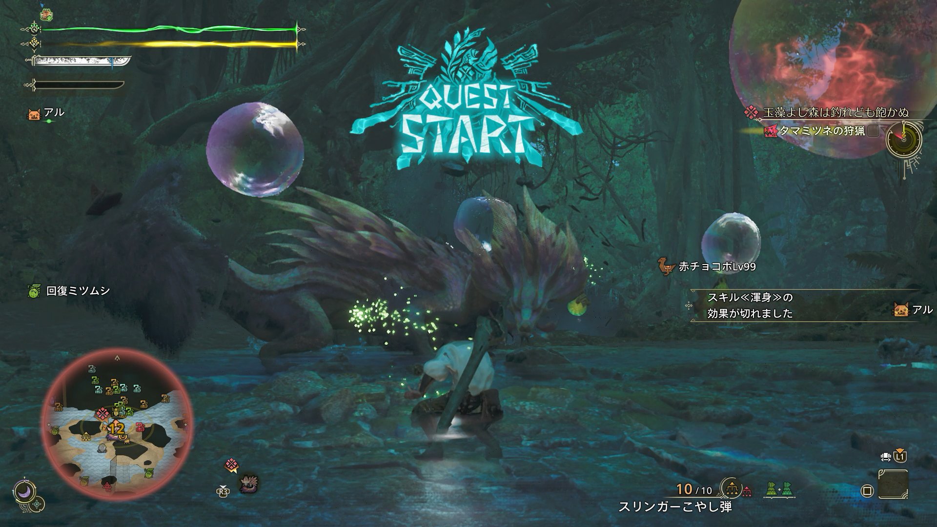 …さて。今回、PS5世代のハードに登場ということで、始めて高性能側のモンハンに参戦することになり、まず気になったのが、泡の描写である。泡やられという専用のST異常を持ち、タマミツネの最大の特徴と言える。だが、あくまでその見た目は、ゲーム的な、ふよふよとした泡であった。