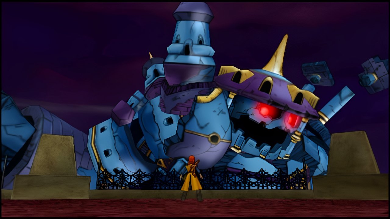 最後に、塔の最上部まで出ると、連戦で最後の敵となる「暗黒の魔人」が登場する。空が見えた時点で、さっさと神鳥に変身して逃げれば良いのだが、主人公たちは、敵の登場ムービー(約35秒)をちゃんと待った後、律儀に戦いの相手をする。RPGはプロレスである。